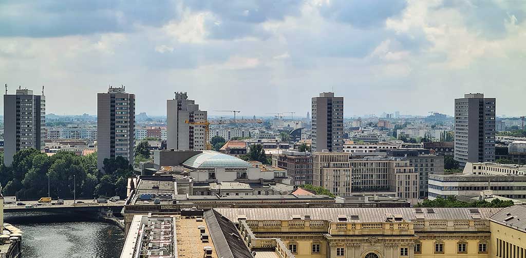 Und hier der Blick Richtung Süden: über die Dächer vom Humboldt-Forum nach Kreuzberg.