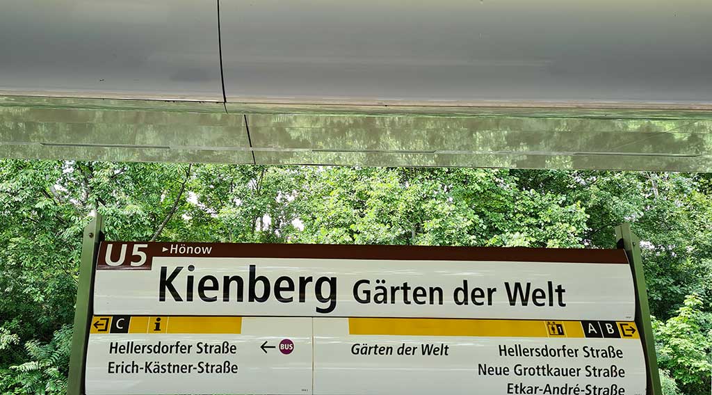Danach heißt es wieder rein in die U5 und ab Richtung Hönow. Alexanderplatz, Schillingstraße, Frankfurter Allee … die Stationen ziehen an mir vorüber, beinahe schon wie alte Bekannte, dann folgen Tiergarten und Wuhletal und schließblich Kienberg „Gärten der Welt“. Anlässlich der IGA 2017 wurde die Haltestelle neu gestaltet und das Areal ausgeweitet. Die ursprünglichen Gärten der Welt gibt es aber schon seit 1987.
