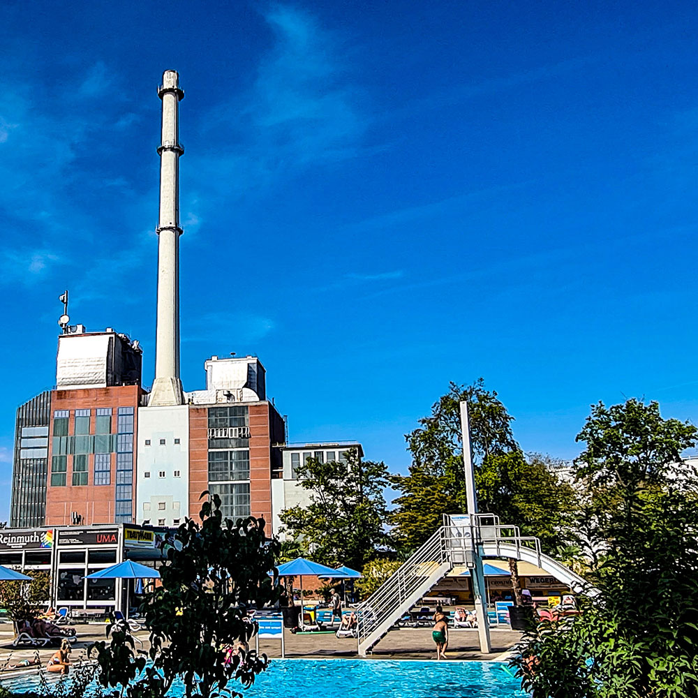 Mitten im Rheinhafen von Karlsruhe, direkt neben dem imposanten Kraftwerk, liegt das Sonnenbad – ein Ort, der auf den ersten Blick vielleicht ungewöhnlich erscheint, aber genau darin seinen Charme hat. Von März bis November können Freiluft-Fans hier das Freibadgefühl genießen, denn das Wasser ist in der kälteren Jahreszeit auf bis zu 28 °C beheizt.