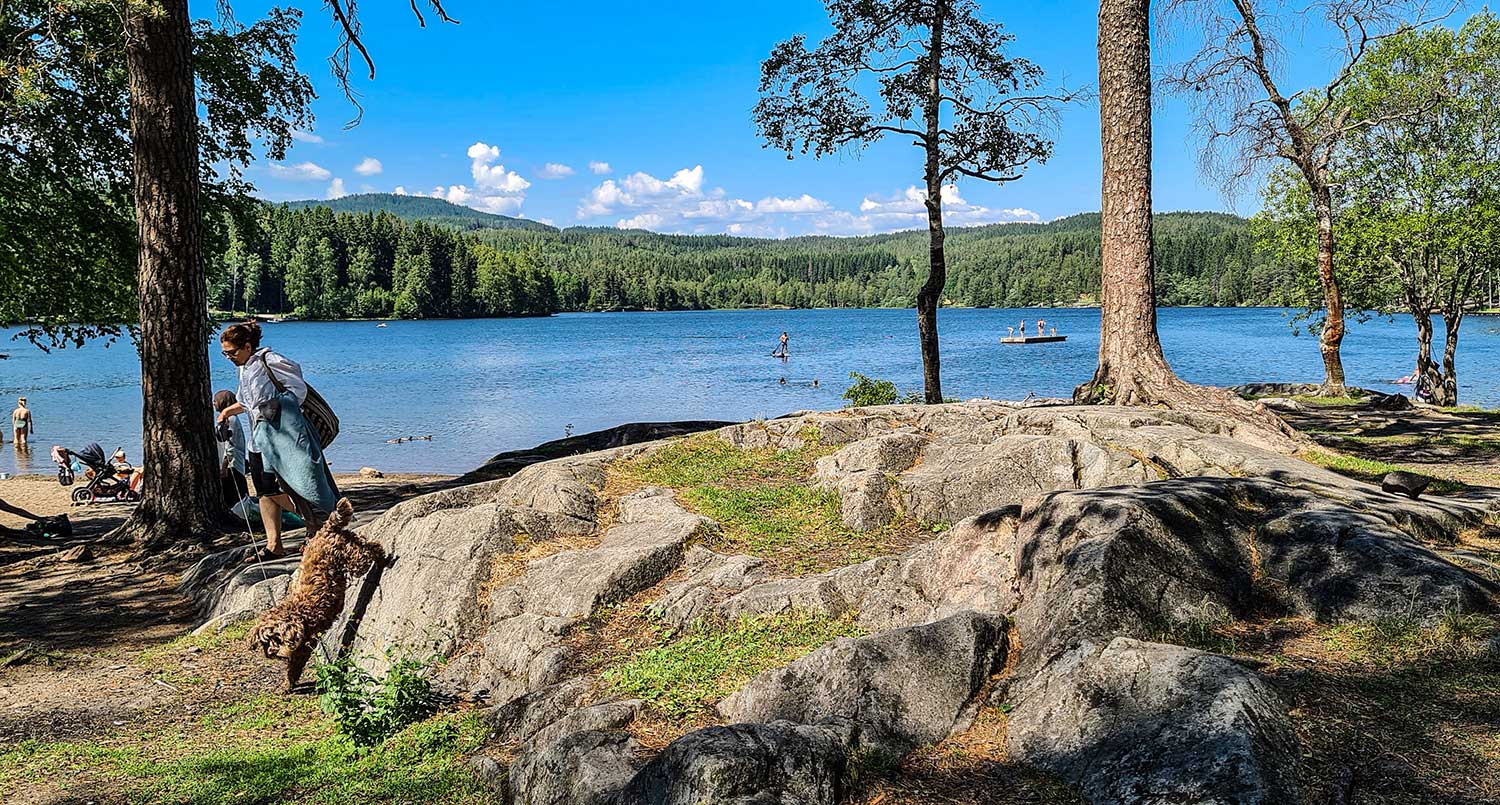 Pures Norwegenfeeling: Große Felsen, tiefblaues Wasser, blauer Himmel und dunkelgrüne Wälder – all das erwartet dich am Sognsvann-See. Hier fühlt man sich mitten in der Natur, obwohl man nur bis zur Endstation der Linie 5 in Oslo gefahren ist. Ein paar Schritte von der Haltestelle entfernt findest du diesen idyllischen Badesee, der ideal zum Schwimmen und Entspannen ist.