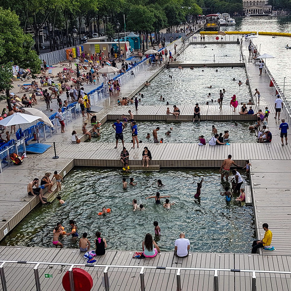 Neu 2024!: Das Badevergnügen Paris Plages haben die Pariser ausgeweitet. Jetzt gibt es auch im 10. Arrondissement am Quai de Valmy des Canal St. Martin ein Becken zum Schwimmen. Geöffnet hat es bis 1. September 2024