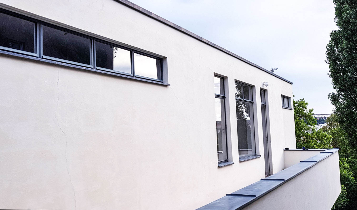 Ich habe ein wenig Pech, denn gerade in dieser Woche in der ich in Brünn bin, sind Villa und Garten geschlossen. Sie werden aufgehübscht. Mir bleibt der Blick über den Zaun. Was ich sehe, erinnert mich an die Weißenhofsiedlung in Stuttgart. Auch dort hat Mies van der Rohe bahnbrechend gewirkt.