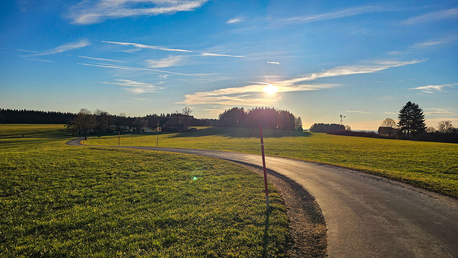 In der Schnitzwerkstatt ist die Zeit wie im Flug vergangen, die Schatten werden länger, und ich muss mich beeilen, wenn ich noch den Bus zurück nach Wurzach nehmen will. Ich wandere über Starkenhofen nach Seibranz, dort kommt der Bus um 16.20 Uhr. Ein freundlicher Busfahrer bringt mich nach Hauerz, und empfielhlt mir, mit ihm weiter nach Leutkirch zu fahren und von dort mit einem anderen Bus zurück nach Bad Wurzach zu fahren. Das sei besser, als in der Kälte zu warten. Gesagt, getan. Also, auch der ÖPNV funktioniert in Oberschwaben – wenn man Zeit mitbringt.