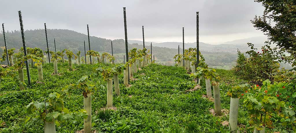 Mit dem Weinberg wollen die drei Micro-Winzer zum Erhalt der einzigartigen der Natur- und Kulturlandschaft beitragen. „Wir arbeiten ökologisch und lassen uns gerade Bio-zertifizieren“, erzählt Uli. „Deshalb setzen wir bei Neuanpflanzungen konsequent auf pilzresistente Sorten (PIWI) wie Prior und Satin Noir.“ Uli ist stolz, dass er die Prior-Reben nur einmal spritzen musste. Ökoweine werden wegen der „milderen“ Mittel oft häufiger gespritzt als Rebstöcke im traditionellen Weinbau. Die Bio-Kollegen seien bis zu 20-mal gefahren, erzählt er mir. Zwischen den Reihen wächst Grün. Auch das ist eine ökologische Maßnahme. Die Begrünung schützt den Hang vor Erosion und verbessert den Boden. Ab diesem Winter werden bretonische Zwergschafe zwischen den Rebstöcken grasen und beim Mähen und Düngen helfen.