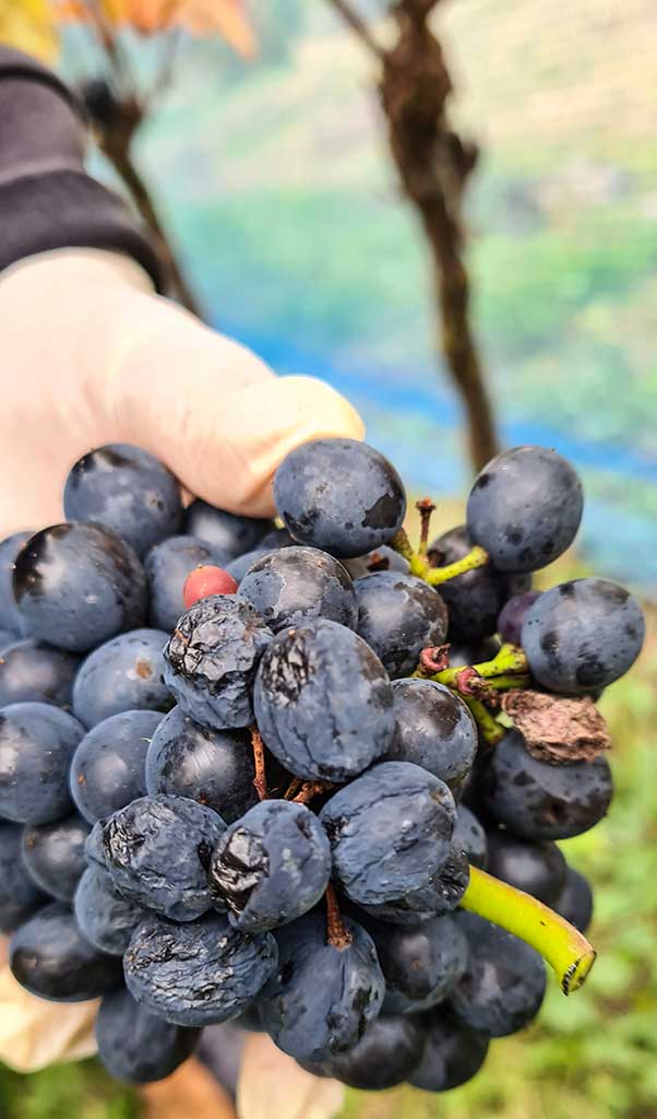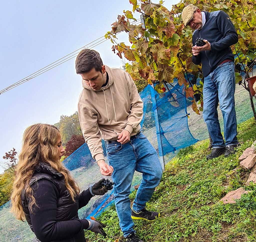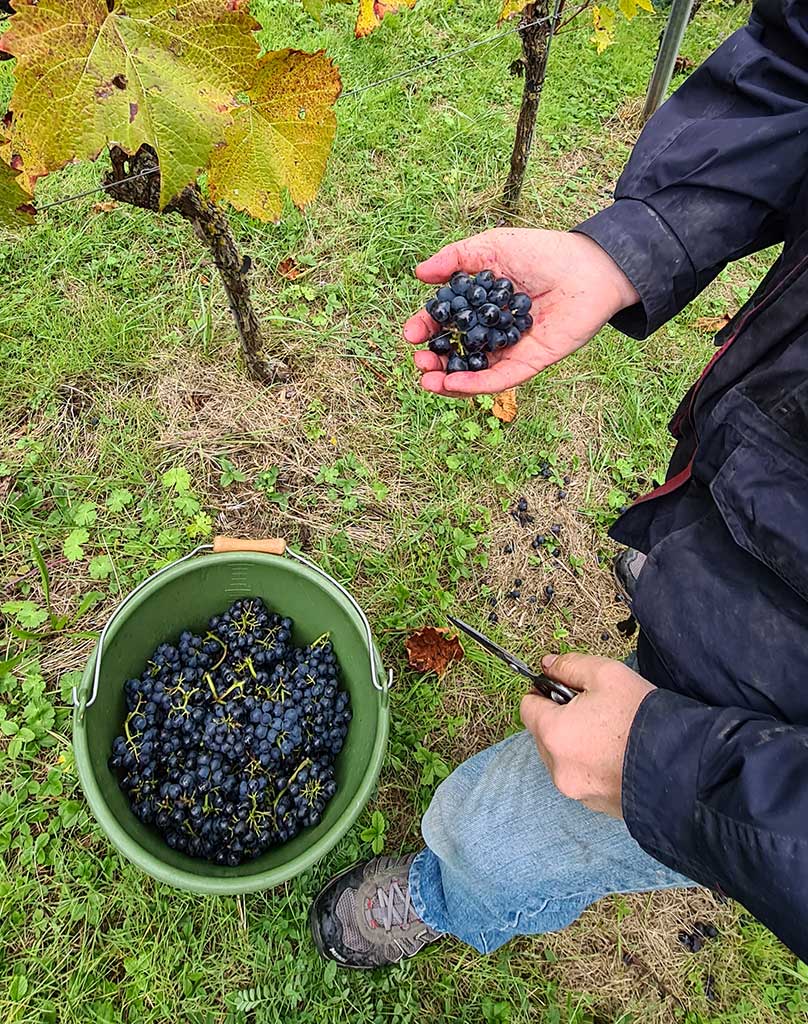 Da hilft nur sorgfältige Handauslese. Und seine Frau Nicola ergänzt: „Wir ernten nur die, die wir auch selbst essen würden. Denn wenn die Trauben schlecht sind, hat auch der Wein keine gute Qualität.“