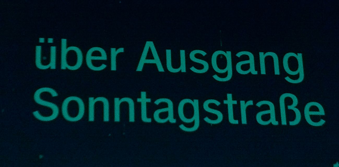 Neulich war in Berlin, leider nur auf der Durchreise und ich hatte nicht viel Zeit. Gerade mal anderthalb Stunden blieben mir, um mit der S5 zu fahren. Die S-Bahn-Linie S5 ist eine Querverbindung und verläuft von Westen nach Osten und umgekehrt, also von Spandau über Charlottenburg, Zoo, Friedrichstraße, Alex bis nach Friedrichsfelde und Strausberg in Brandenburg. Die Strecke hat 36 Haltestellen, und eine Fahrt ohne Unterbrechung von Spandau nach Strausberg dauert eine Stunde und zwanzig Minuten.