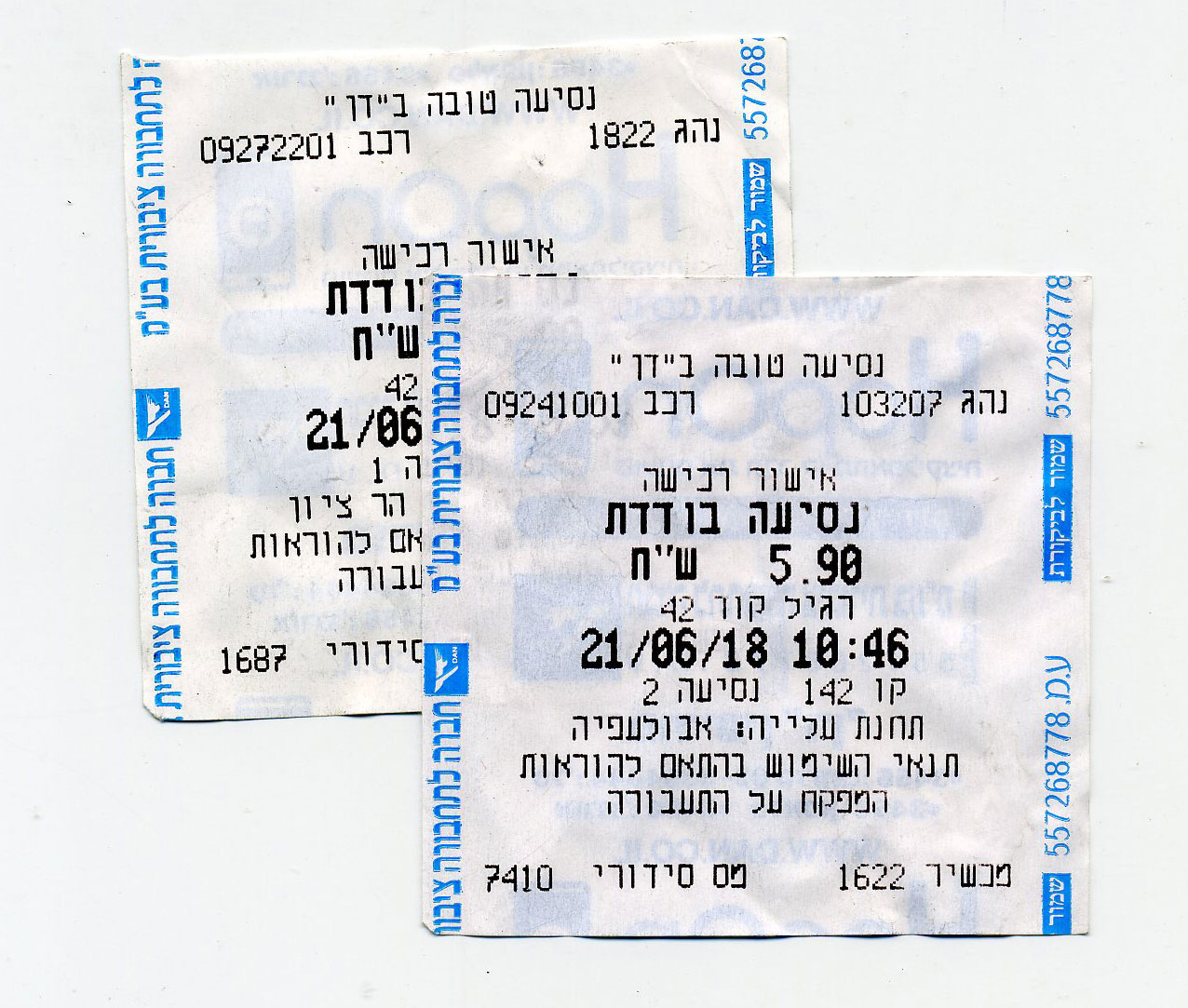 Beim Fahrer bekommt man kein Ticket mehr. Nur noch am automaten im Bus, welcher natürlich nur in hebräisch funktioniert. Die Personenanzahl bekommt man auch ohne sprachkenntnis eingegeben., danach nur noch die Kreditkarte ran halten und der bildschirn wird nach erfolgter Abbuchung grün.