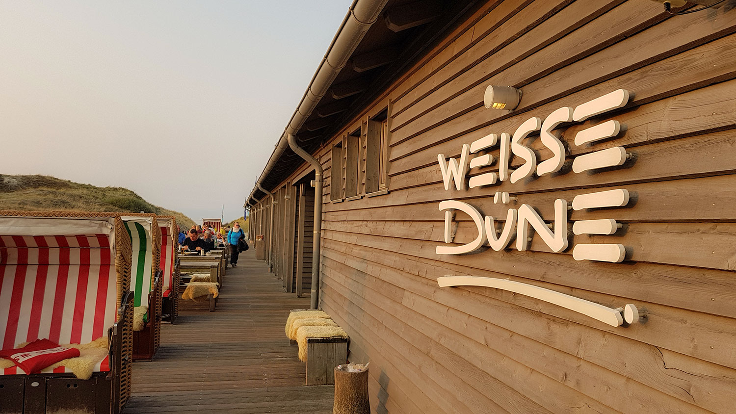 | Sehenswürdigkeiten | Ostbadestrand Weisse Düne, der hippste Strand der Insel. Das liegt wohl auch am gleichnamigen Lokal, das am Bohlenweg zum Strand liegt. Es gibt mehrere Beachvolleyballfelder, Beachsoccerplätze, Slacklining, einen Kinderspielplatz, Strandmassage, Duschen, Umkleiden, Toiletten und einen Wickelraum. Aber keine Angst der Strand ist sehr, sehr weitläufig, er bietet Luft zum Atmen, Freiraum, Dünen und weißen Sand, so weit das Auge reicht. | ||