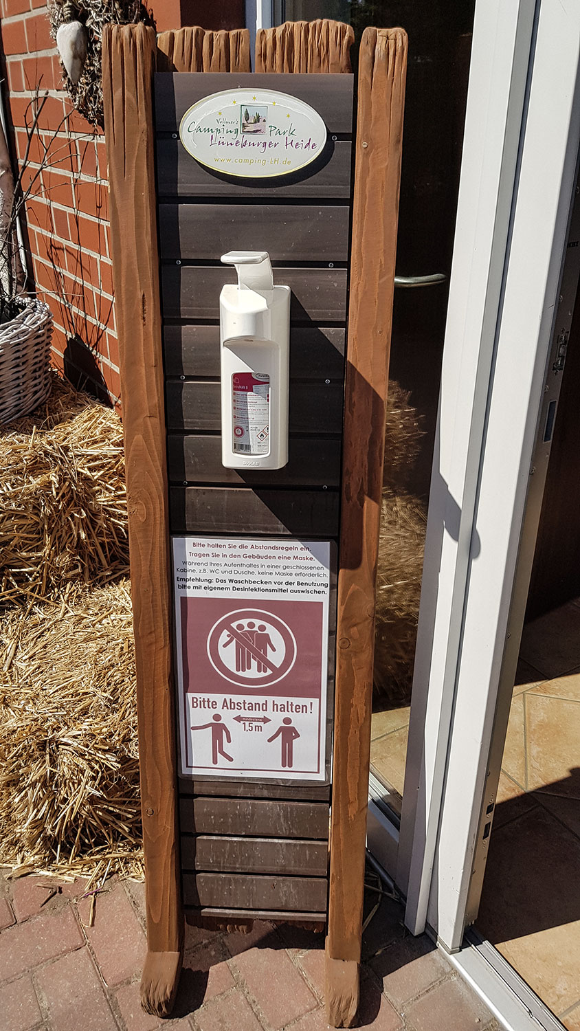 Meine Erfahrung nach fünf Campingplatzbesuchen in fünf Bundesländern ist, dass sich die Betreiber viel Mühe geben und die Camper sich durch die Bank daran halten. Im Campingpark in der Lüneburger Heide wurden auch die Desinfektionsstationen schön dekoriert. Der letzte Platz in der Nordeifel hat eine zusätzliche Hygienepauschale von 2,50 € pro Person/pro Tag erhoben. Er war aber nicht sauberer als andere Plätze…