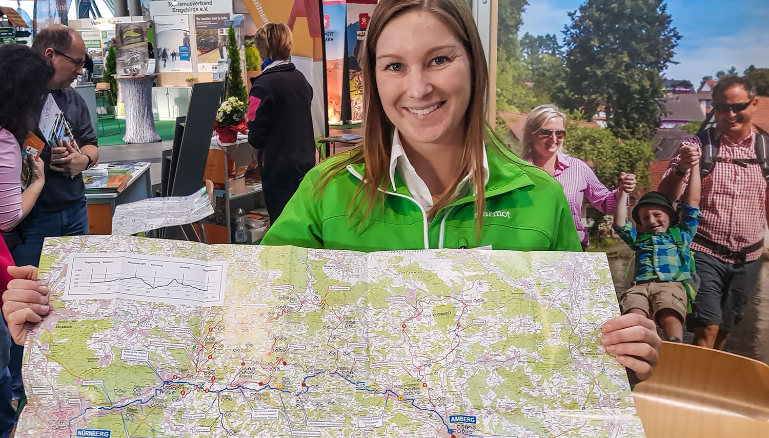 Carla Seyerlein, Tourismusexpertin vom Nürnberger Land, zeigt mir die Route auf der Karte. Sie führt entlang der Pegnitz, Vils, Naab, Donau und Altmühl durch Mittelfranken, die Oberpfalz und Niederbayern. Die 300 Kilometer des Fünf-Flüsse-Radwegs sind in fünf Etappen aufgeteilt und auch für Familien gut machbar.