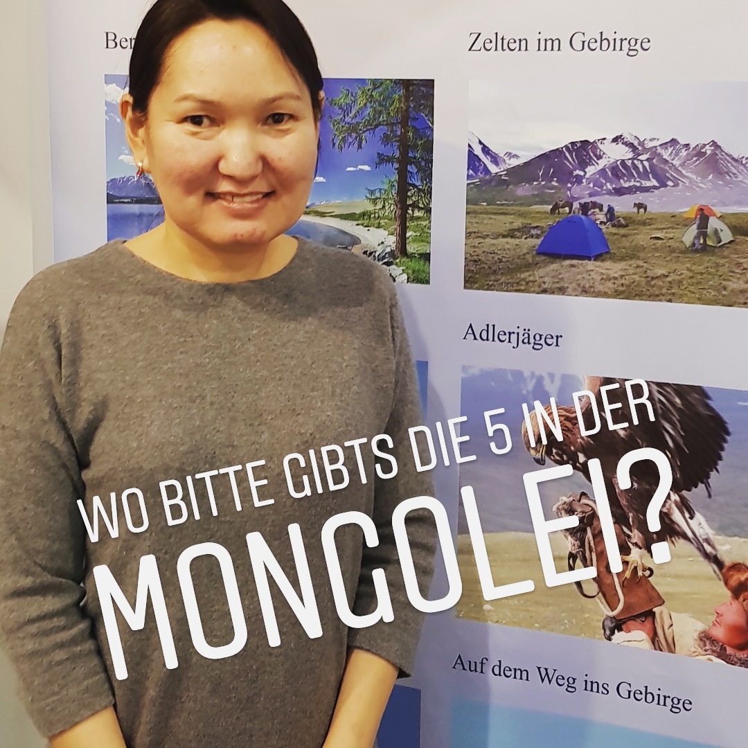 Wo bitte gibts die 5 in der Mongolei? Unendlich ist die Weite des Landes. Auf die knapp 3 Millionen Einwohner kommen 25 Millionen Nutztiere, Pferde, Schafe, Ziegen, Kamele, Rinder und Yaks. In der Hauptstadt Ulanbatoor gibts eine O-Buslinie 5. Auf dem CMT-Outdoor-Gelände hat der Anbieter „Deine-Mongolei-Reise“ eine echte Jurte aufgestellt. Ich bin rein und war gleich ganz weit weg vom Messetrubel und konnte schon ein bisschen die Weite und Stille dieses Landes erahnen.