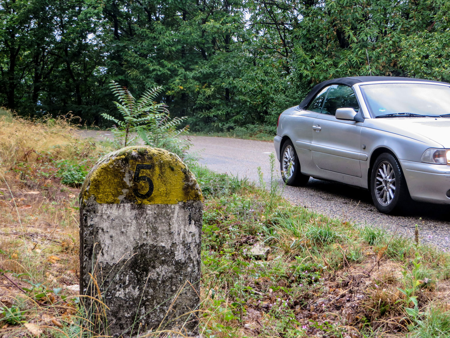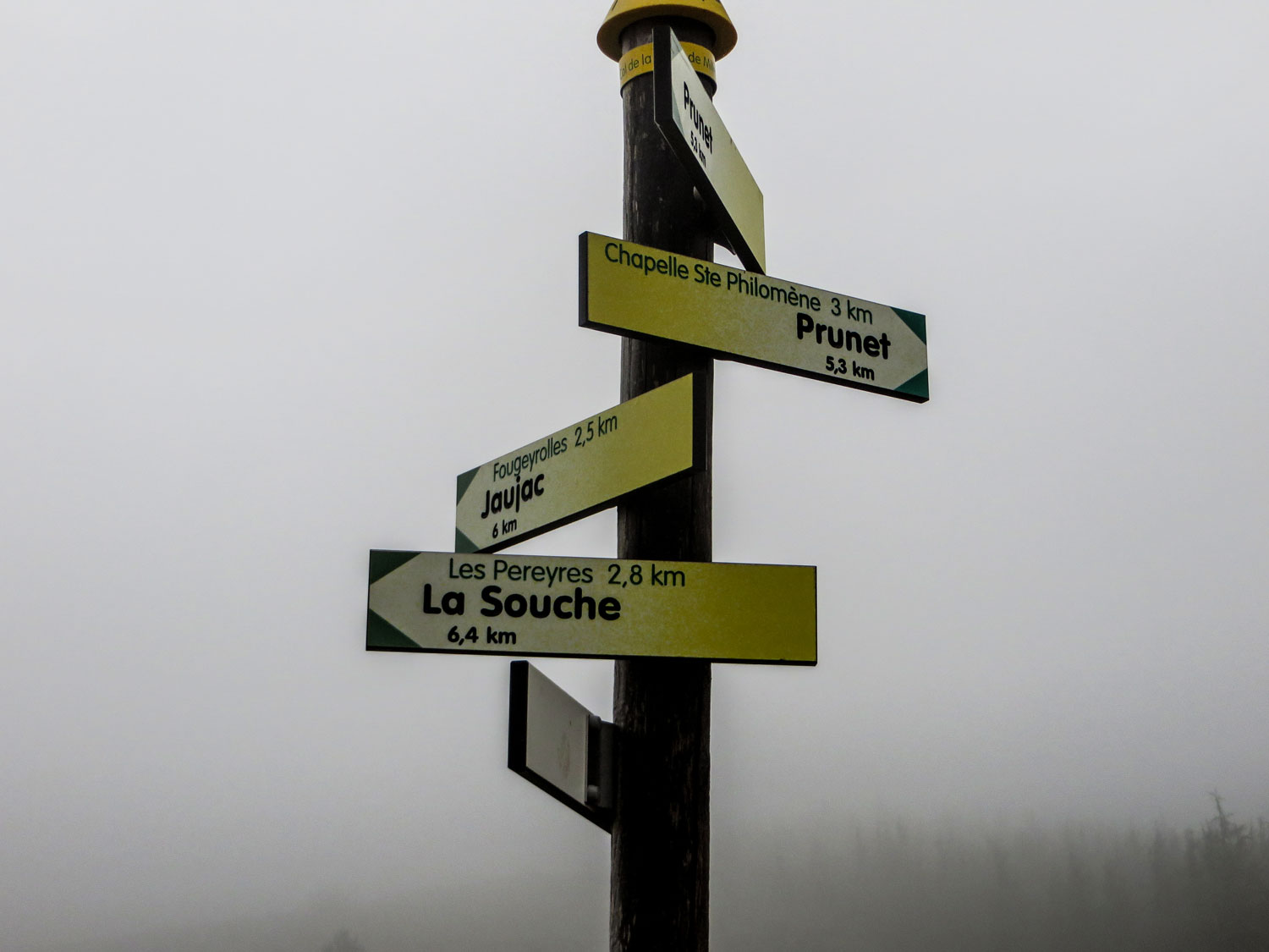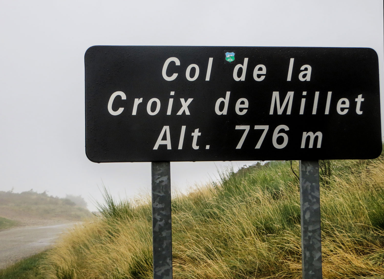 Mit 780 Metern ist der Pass Col de la Croix de Millet die höchste Erhebung der Landstraße. Normalerweise hast du von hier einen fantastischen Blick. Doch in der Nacht zuvor ging ein (langersehntes) Gewitter herunter und jetzt war die ganze Gegend in dichten Nebel gehüllt. Das war irgendwie mystisch. So haben wir uns dann auch die Wanderung gespart.
