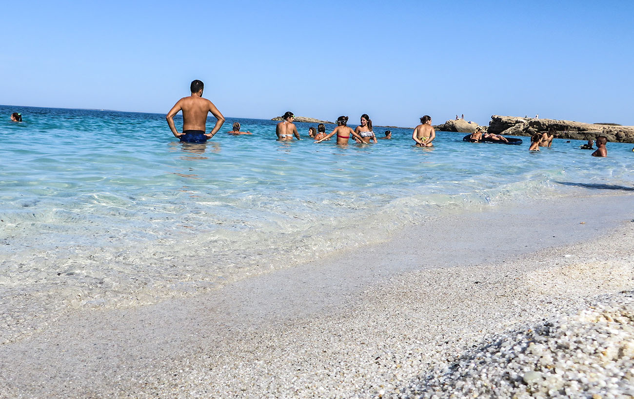 Sardiniens Westen ist einfach wunderschön. Ganz früh sind wir heute zum Strand von IS Arutas aufgebrochen. Der Spiaggia di Is Arutas ist ein ganz besonderer Strand, weil der Sand hier sehr weiß ist. Und eigentlich ist es kein Sand, sondern es sind kleine Quarzkörner, die vom Wasser rund und glatt poliert worden sind. Sie sehen aus wie Reis- oder Hagelkörner und schimmern weiß, rosa, hellgrün und bernsteinfarben in der Sonne. Zusammen mit dem glasklaren Wasser und tiefblauen Meer ist das ein einmaliges Badeerlebnis!
