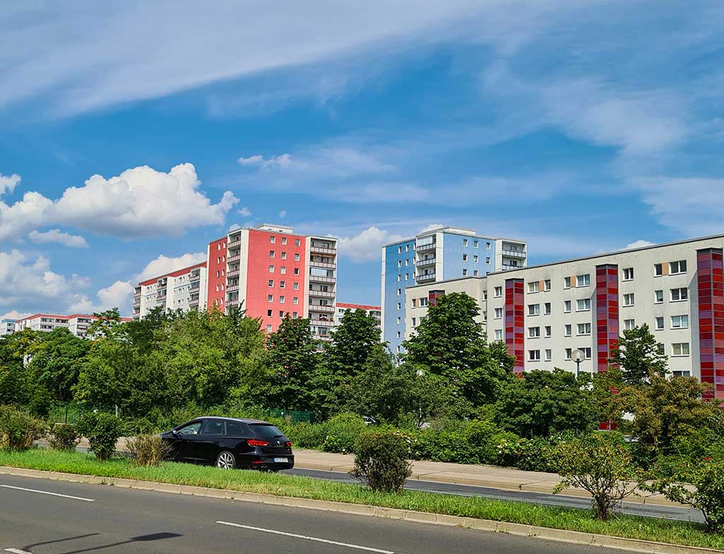- Wiederaufbau in den 1960er-Jahren zu sehen am Bahnhof „Frankfurter Allee“