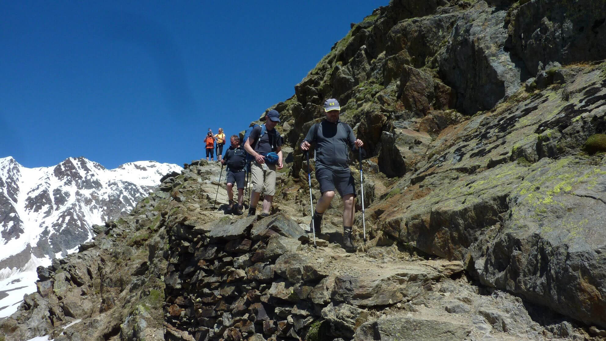 „Der Weg führt über Steine, Felsen, Geröllfelder und durch enge Passagen – er erfordert Beinkraft, Trittsicherheit und Konzentration.“