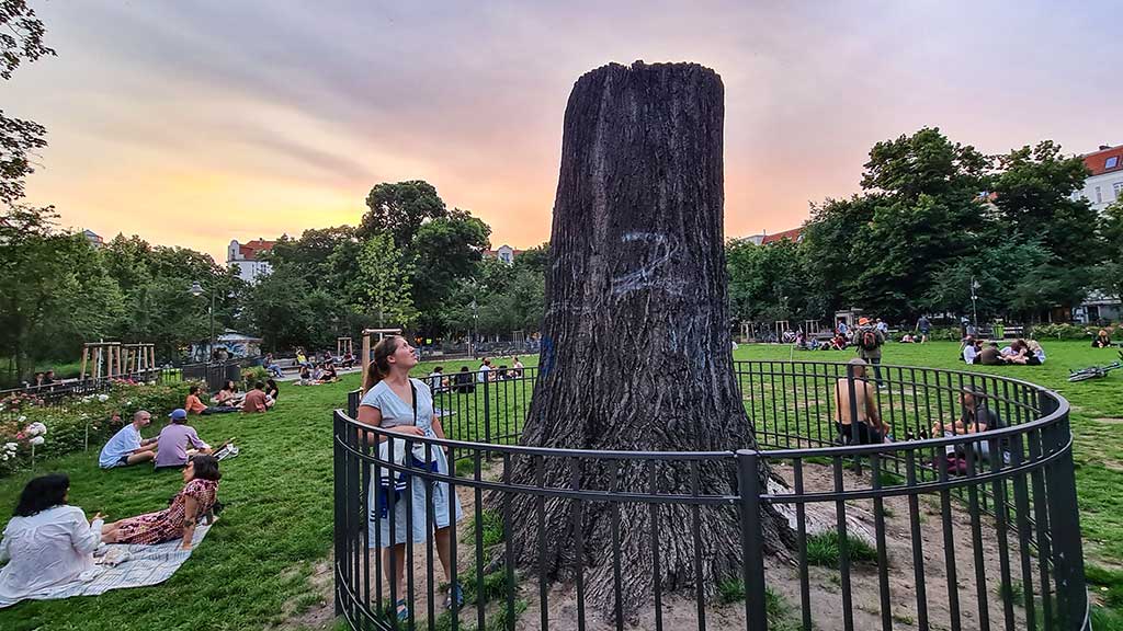 Das ehemalige Arbeiterviertel Friedrichshain hat sich zum Szenequartier gewandelt. Schon in den 1990er-Jahren wurden die ersten Häuser besetzt und mit viel Polizeiaufgebot geräumt. Heute geht es friedlicher zu, aber trotzdem ist das Kiezleben sehr bunt und alternativ. Einfach mal am Boxi schauen, wer so alles vorbeigeht… Sonntags ist das besonders interessant, denn da findet hier der Flohmarkt statt. Rund um den Platz gibt es den besten Späti, die besten veganen Burger, und von der Modersohnbrücke hast du den schönsten Blick in den Sonnenuntergang. Das alles hat mir Andrea verraten, die in der Mainzer Straße wohnt.