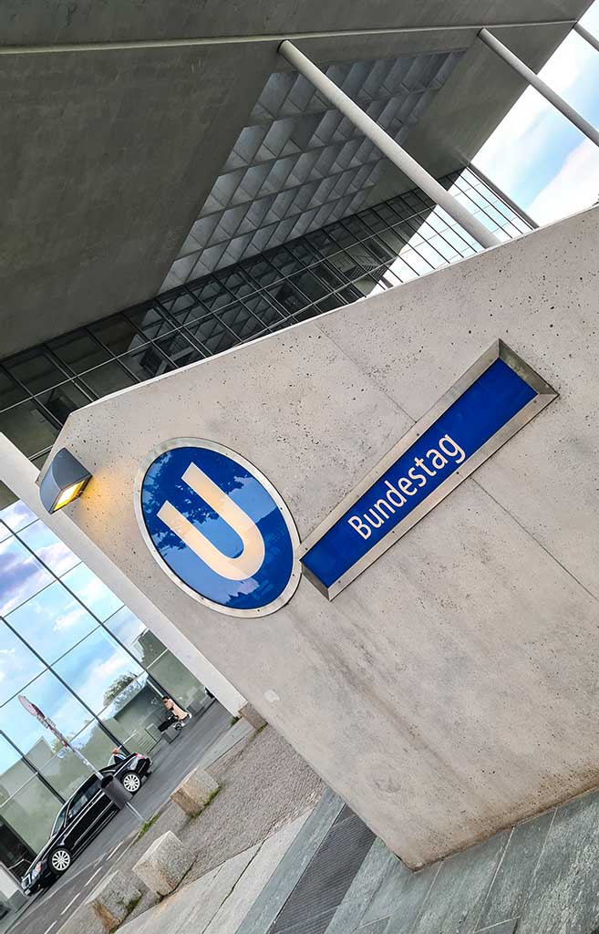 Knapp zwei Minuten später hält die U5 direkt am Bundestag. Jetzt gibt es für den Kanzler und die Abgeordneten keine Ausrede mehr: statt mit Limousinen könnten sie mit der U-Bahn zum Paul Löbe-Haus fahren und so ein klares Zeichen für die Verkehrswende setzen. Das Kanzleramt liegt schräg gegenüber und bis zum Reichstagsgebäude mit der imposanten Kuppel ist es auch nicht weit.