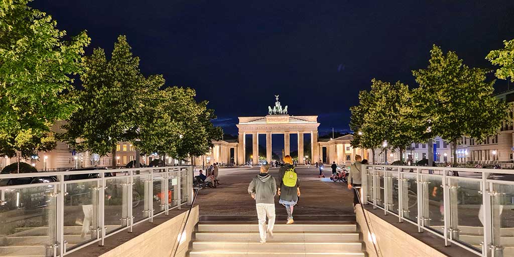 Wenn du die Treppen der U-Bahnstation Brandenburger Tor hochgehst, erlebst du einen regelrechten Wow-Moment. Nachts wirkt das Symbol der deutschen Einheit noch beeindruckender als tagsüber, weil dann weniger Menschen den Blick verstellen.