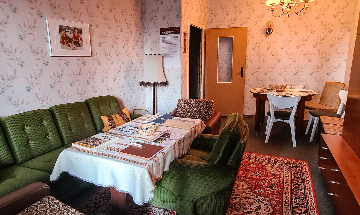 Am Cottbusser Platz erwartet dich die letzte Original-Platte Berlins. In der 61 Quadratmeter großen Drei-Zimmer-Wohnung tauchst du direkt in das Lebensgefühl der DDR der 80er-Jahre ein. Alles sieht si echt aus, als wären die Bewohner mal eben zum Konsum um die Ecke gegangen. Kein Wunder, dass die Wohnung oft für Film- und Fotoaufnahmen gebucht wird – auch Prominente waren hier schon zu Gast. Wolfgang Sawatzky, der hier nach dem Rechten schaut, zeigt mir einen Ordner mit Zeitungsberichten von Klaus Wowereit, Simone Thomalla… . Beim Rundgang durch die Räume entdecke ich Möbelstücke, die mir vertraut vorkommen, denn viele davon gab es auch bei meiner Oma und Tante in Westdeutschland. „Diese Nussbaumschrankwände wurden damals auch für den Westmarkt produziert und über den Otto-Katalog verkauft,“ erklärt Sawatzky. „Der Staat brauchte die Devisen, aber das wussten nur wenige.“ Und im Schlafzimmer entdecke ich noch eine 5. Ein Orden zum Anstecken für Arbeiter, die ihren 5-Jahres-Plan erfüllt hatten – eine Erinnerung an die DDR-typische Auszeichnungskultur für fleißige Leistungserbringer.