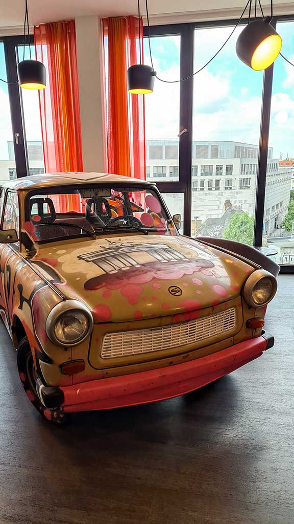 The niu hide-Hotel: Frankfurter Allee, coole Herberge mit Trabis in der Lounge und auf dem Dach