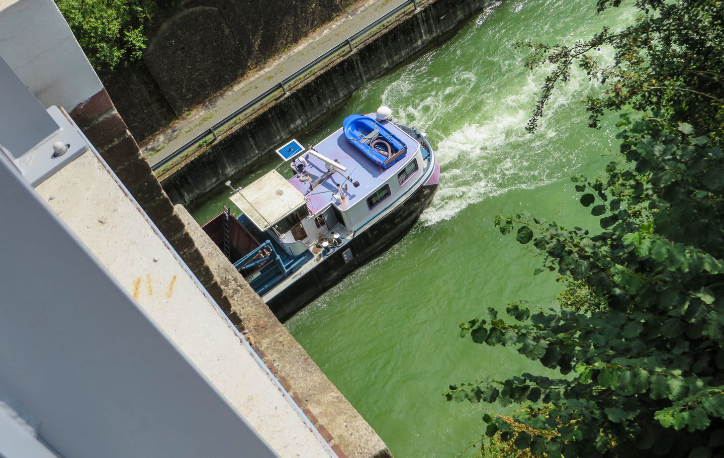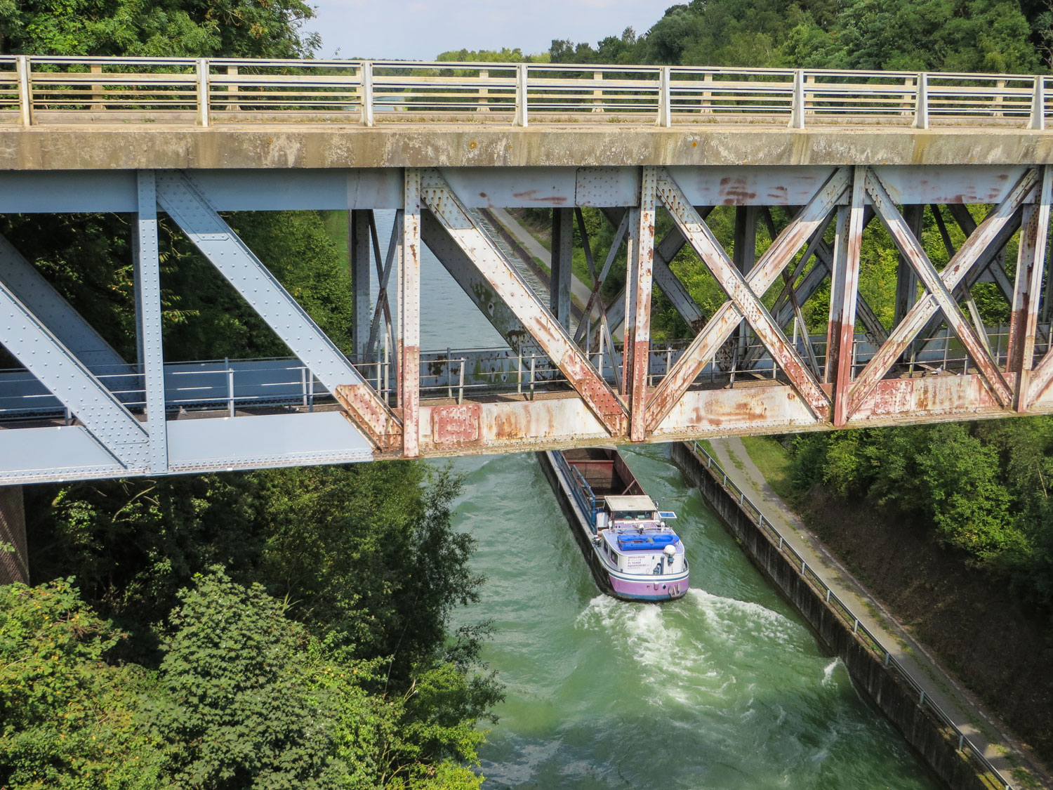 Gestärkt machen wir uns an die letzte Etappe. Überqueren auf einer schmalen Eisenbrücke den Canal du Nord.