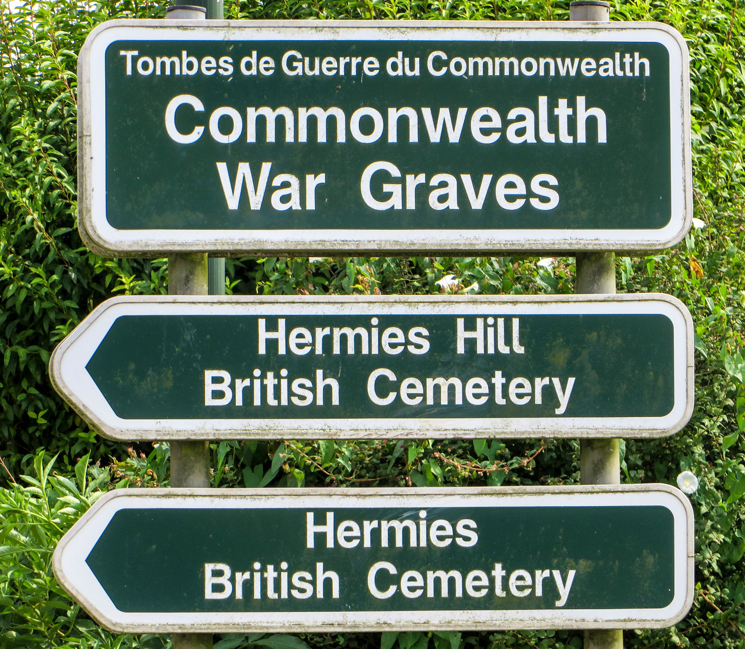 Gleich hinter Baurains verwandelt sich die D5 in eine wunderschöne Allee, die kerzengerade auf den nächsten Ort zusteuert. Kurz vor Neuville-Vitasse liegt rechter Hand der Militärfriedhof London Cemetery. Er ist relativ klein und beschaulich. Nachhaltig beeindruckt hat mich das „Gästebuch“, das in einer Mauernische liegt und fleißig genutzt wird. Viele Nachkommen von gefallenen Soldaten haben ihre Gedanken darin niedergeschrieben. Die Gegend um Arras war einer der Hauptkampfschauplätze des Ersten Weltkriegs, sie zählt zur sogenannten Westfront. Monatelange Stellungskriege haben schweren Verwüstungen verursacht. An allen Fronten sind viele Soldaten gefallen.