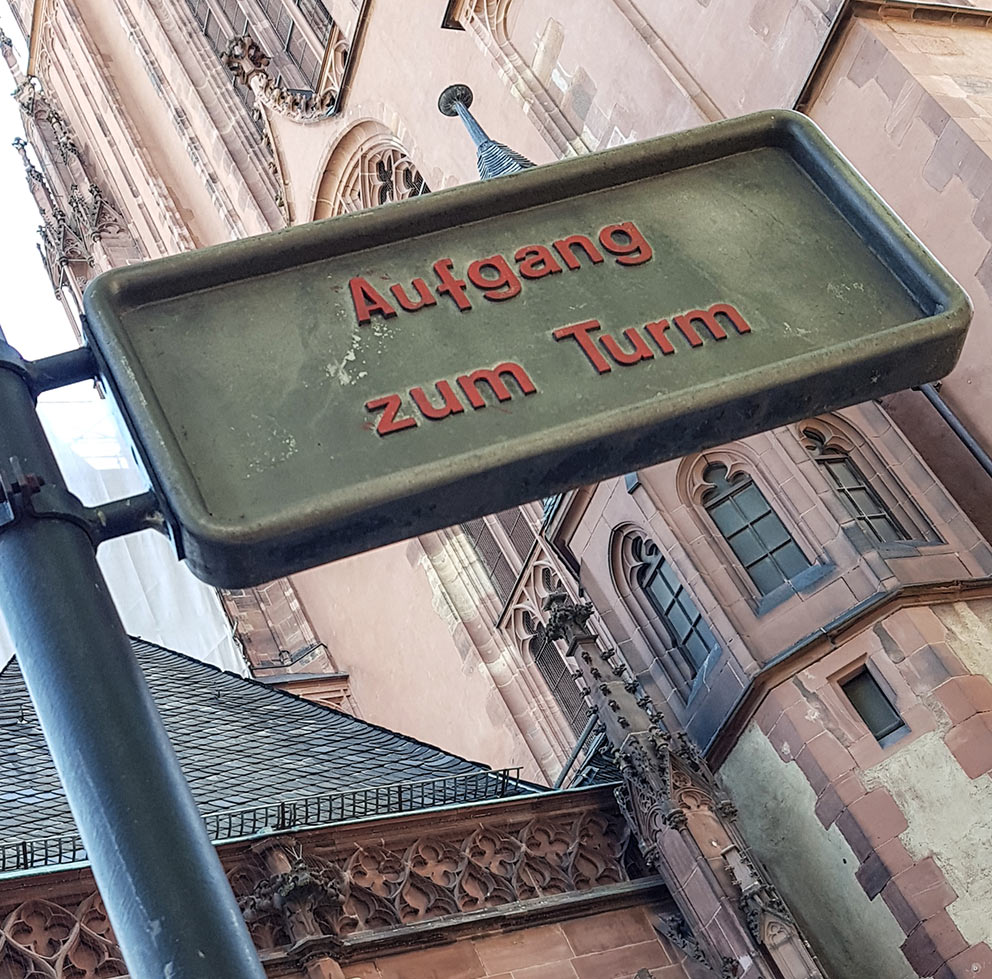 Möchtest du dir erst einmal einen Überblick über die Stadt verschaffen? Also, dann richte es dir in der U5 auf den blaugrünen Sitzen nicht zu gemütlich ein, sondern steige gleich an der nächsten Haltestelle Willy-Brandt-Platz und oder spätestens am Dom/Römer wieder aus. Zwei Aussichtsplattformen lege ich dir ans Herz: den Maintower und den Domturm.