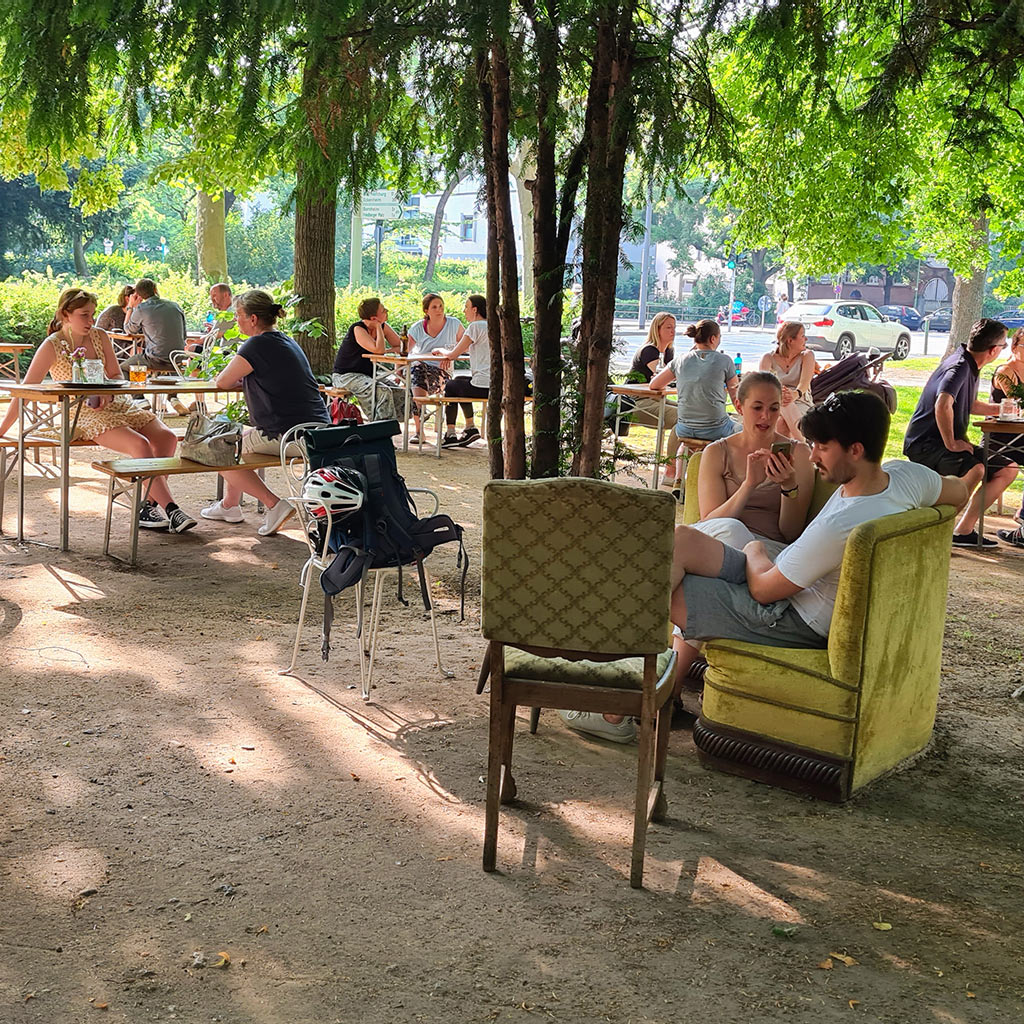 Mit viel Liebe zum Detail und zu alten Stühlen und Sofas hat das Team von feinfrankfurt aus einem einfachen Kiosk einen charmanten Wohlfühlort gemacht. Wasserhäuschen nennen sich die Trinkhallen übrigens in Frankfurt… Am späten Nachmittag ist die Atmosphäre dort besonders schön. Gleiches gilt für den Bethmann-Park, der zwei Straßenkreuzungen südöstlicher liegt.