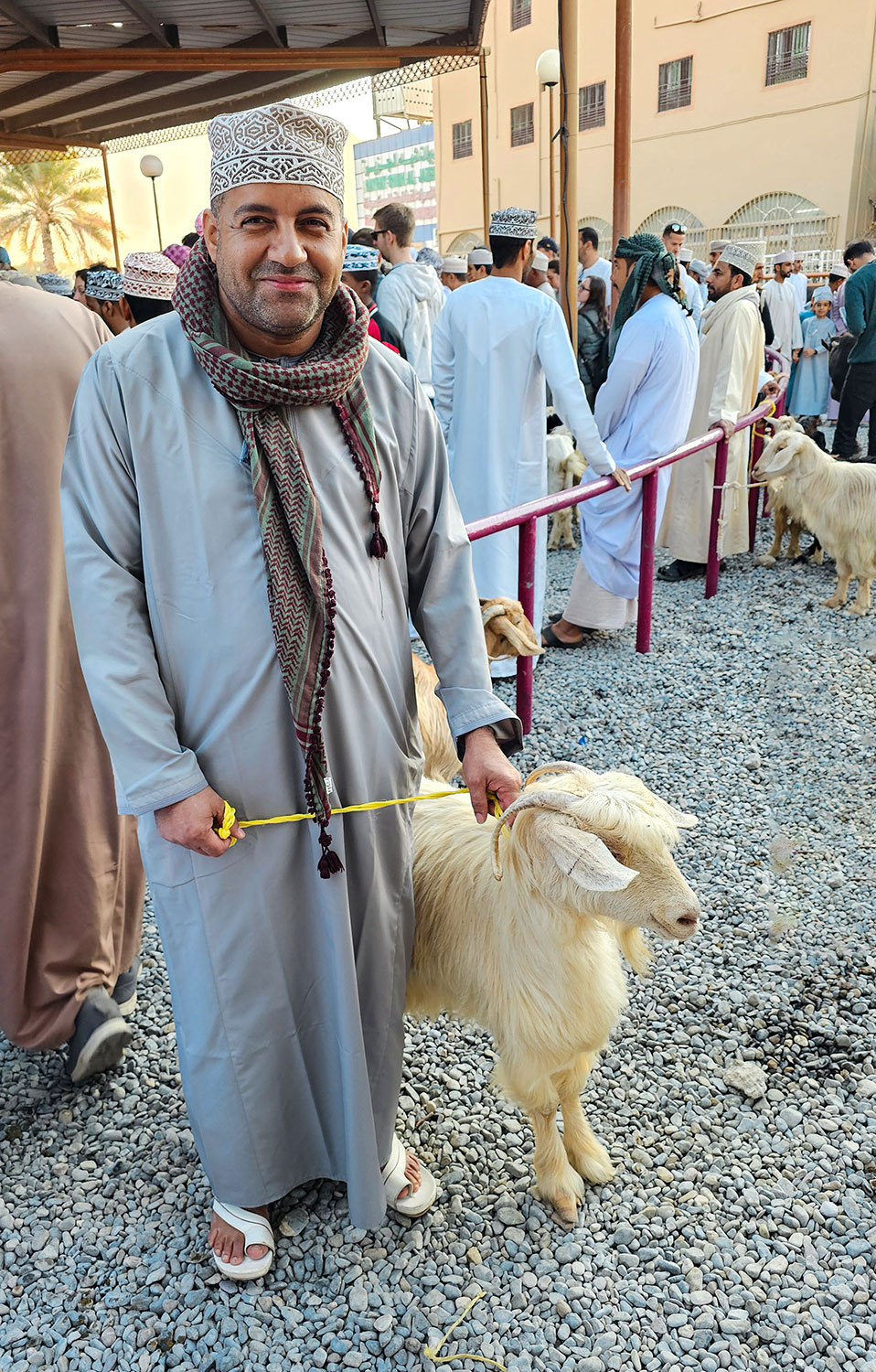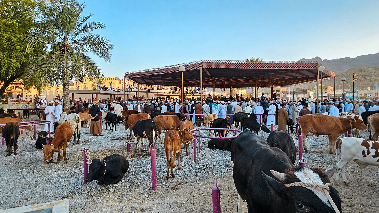 Mein Stadthighlight im Oman ist Nizwa. Eine Stadt wie aus einem orientalischen Märchen. Mit engen Gassen, alten Lehmhäusern und buntem Markttreiben. Ich habe bewusst mehrere Fotos im Tagesverlauf gewählt. Sie zeigen Ansichten vom Nizwa-Fort auf die Altstadt. Und zur Abrundung noch ein paar Fotos vom Viehmarkt.