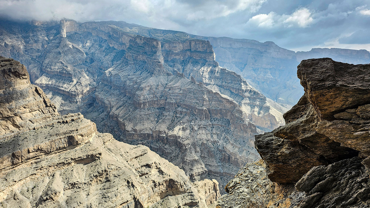 Die Berge im Oman sind bis zu 3.000 Meter hoch, sehr steinig, staubig und kahl. Eine der schönsten Wanderungen, die man machen kann ist der W6-Balcony-Way am Grand Canyon des Oman.