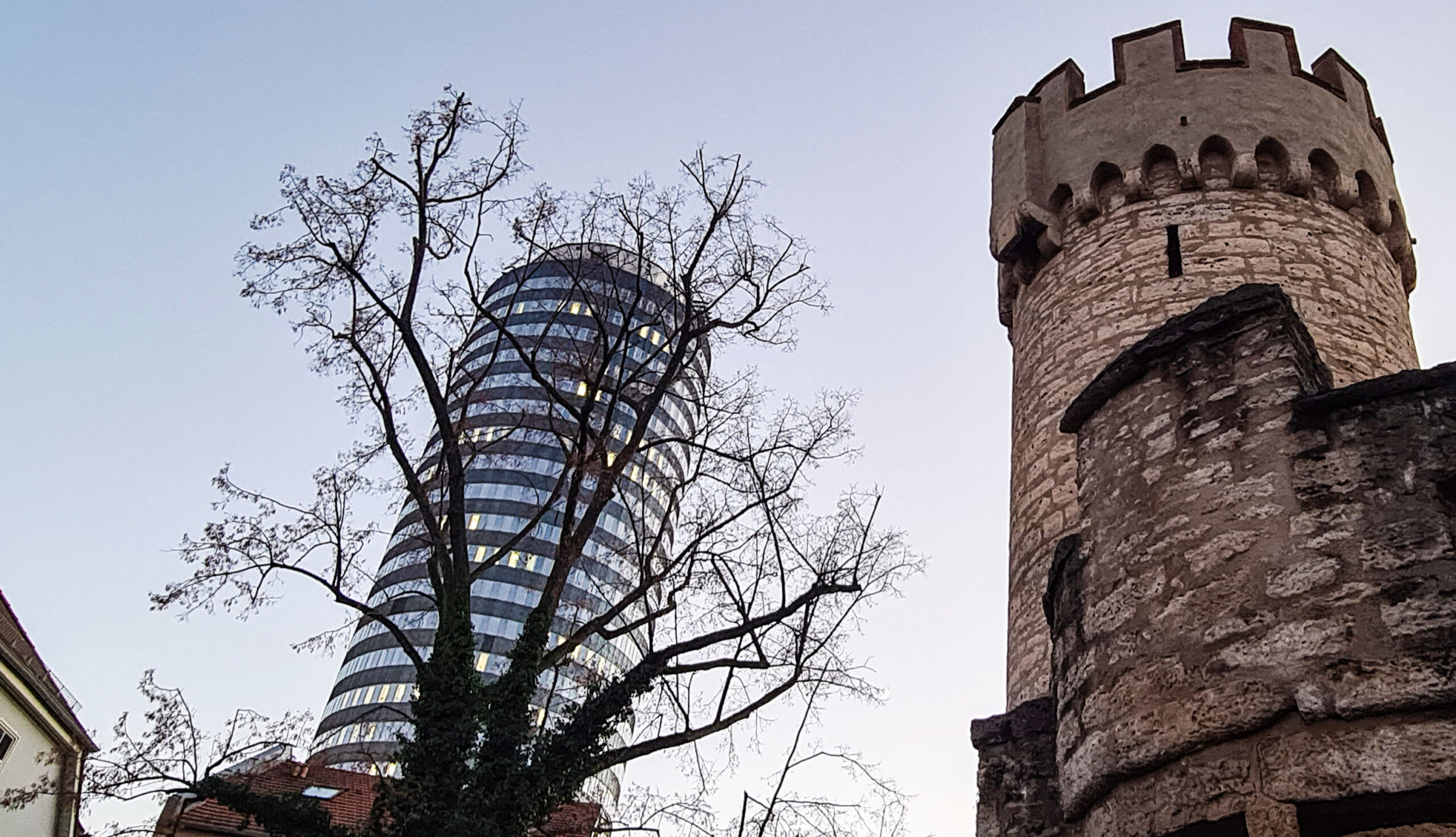 Wie modern etwas erscheint, hat auch viel mit der Nachbarschaft zu tun. Die „Keksrolle“ von Jena sieht neben dem mittelalterlichen Turm auf jeden Fall ziemlich jung aus.