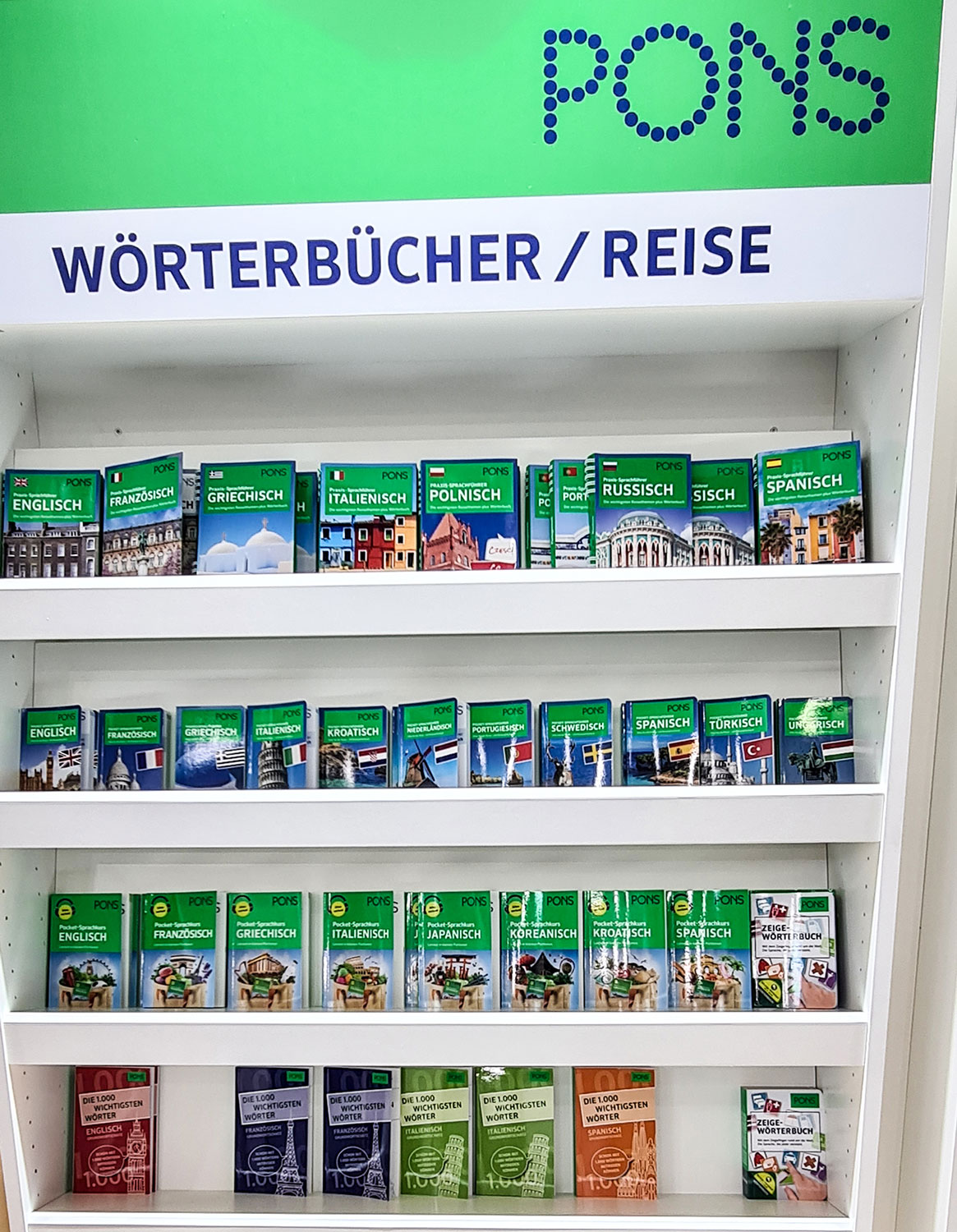 Ich wette, dass jeder von uns mindestens ein grünes Pons-Reisewörterbuch oder ein gelbes Langenscheid-Dictonairy im Regal stehen hat. Die ehemaligen Rivalen gehören seit 2020 zur Klett-Verlagsgruppe. Auch wenn es inzwischen bebilderte Pons-Ausgaben und Comic-Reisewörterbücher gibt, so haftet den Bänden doch immer noch was von Schule an. Was Pons in Deutschland ist, ist übrigens Assimil in Frankreich. Mit der Assimil-Methode lerne man Sprachen wie ein Kind, „intuitiv – ganz ohne einzelne Vokabeln zu pauken“, erfahre ich am Messestand. Das wäre auf jeden Fall mal einen Versuch wert, findest du nicht auch?