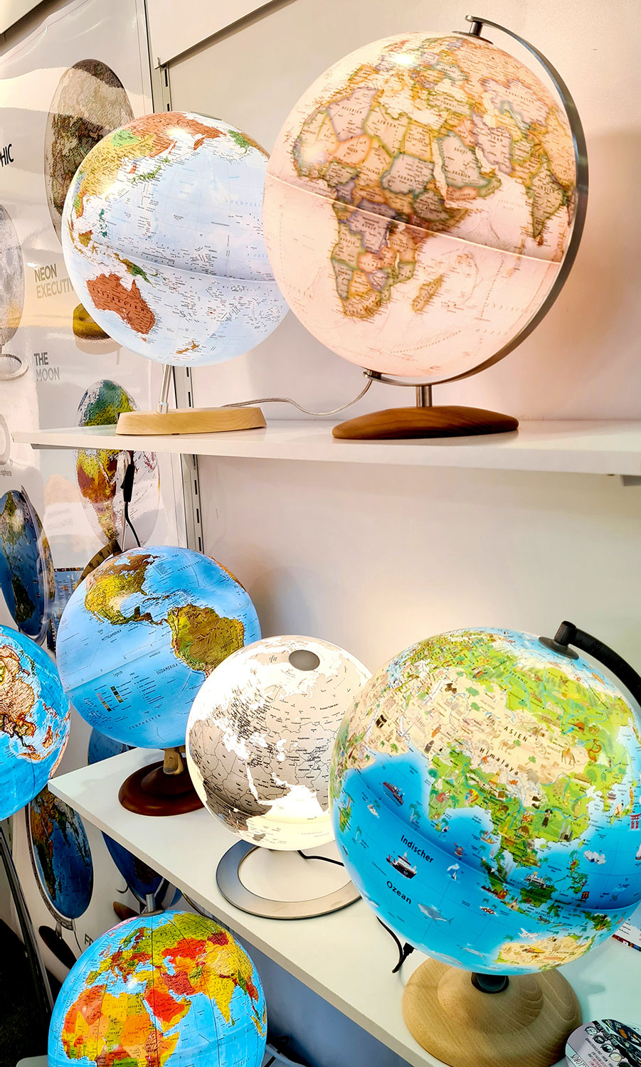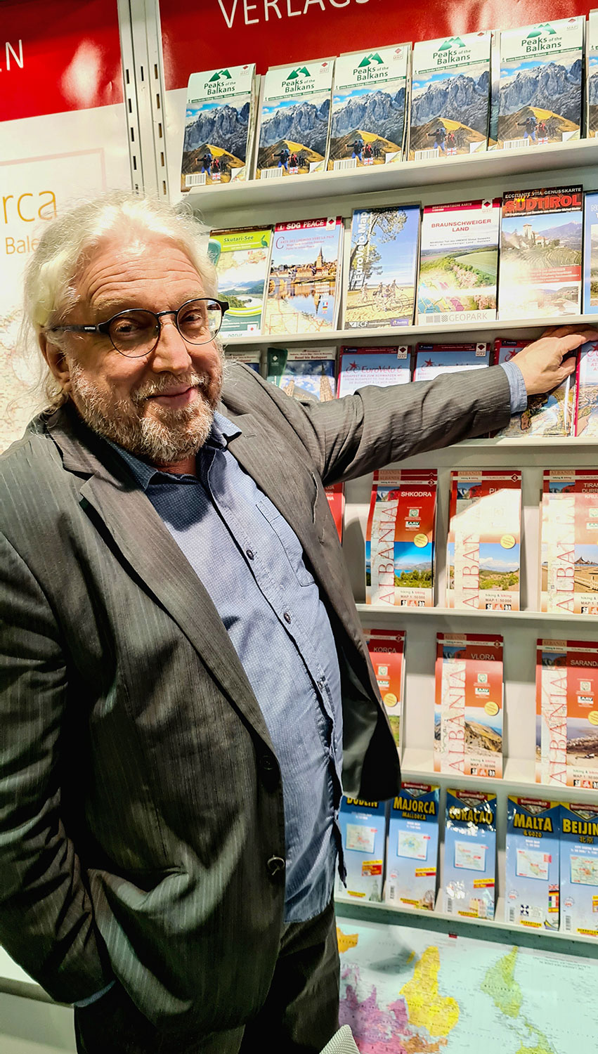 Ich liebe es, in Karten zu stöbern, den Globus zu drehen und Atlanten zu studieren. Durch Zufall lerne ich auf der Buchmesse den Mann hinter vielen Karten kennen. Norbert Eckrich ist gelernter Kartograf und schon lange im Geschäft. Hauptsächlich als Dienstleister für große Verlage, nur wenige Karten bringt er selbst heraus. Neu ist beispielsweise ein Kartenset zur Fahrrad-Euro-Veloroute 6. Nobert Eckrichs Namen merke ich mir unbedingt vor. Denn er wäre der richtige Mann, der von meiner Reise mit der 5 um die Welt eine Karte erstellen könnte.