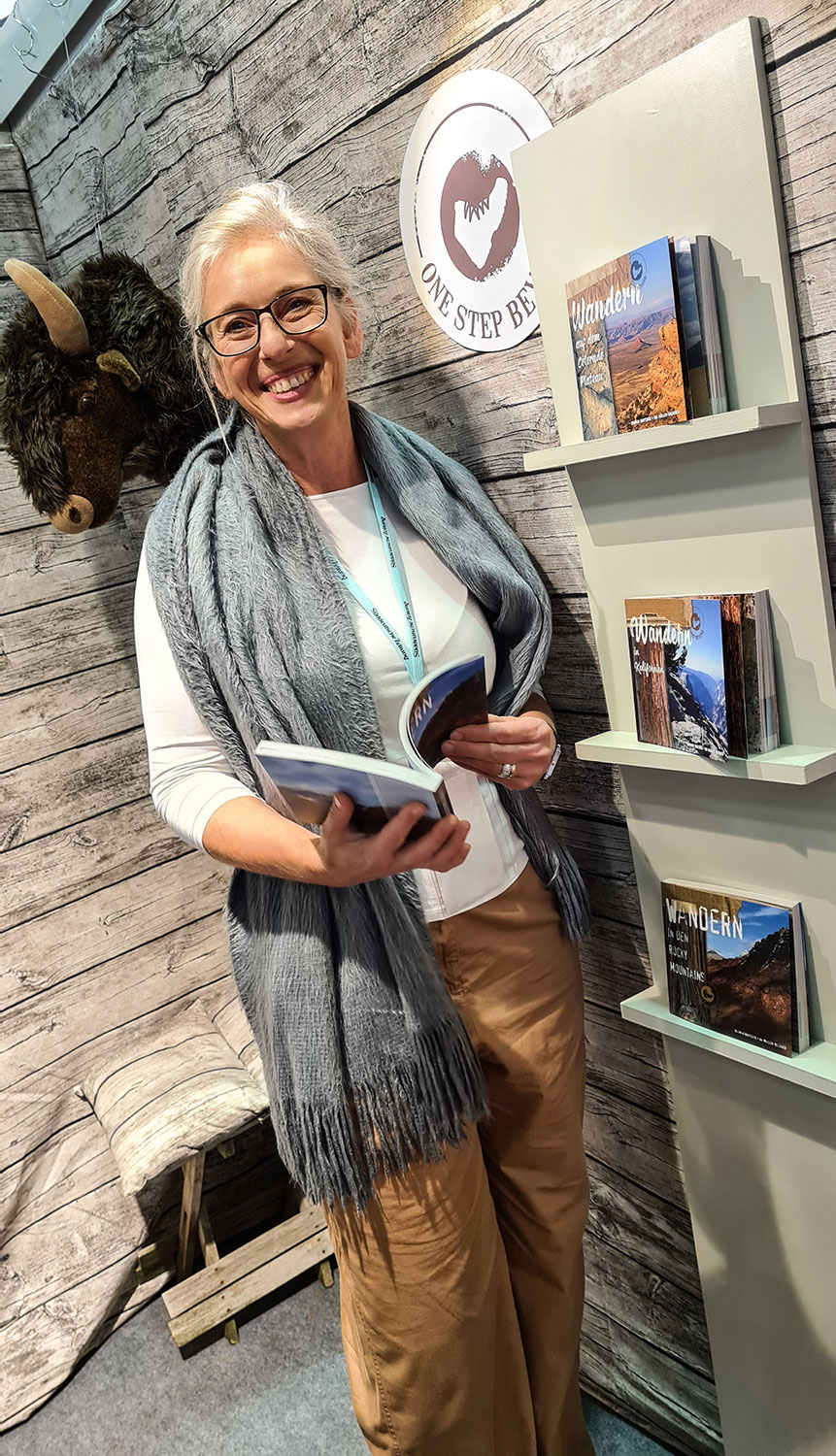 Der Mini-Verlag „One step beyond“ ist mit nur drei Büchern am Start. Die sind aber sehr schön und der Messestand versprüht Wohlfühlatmosphäre. Deshalb möchte ich sie unbedingt erwähnen. Die Wanderbuchautorin und Bloggerin Dagmar Grutzeck lädt zum wandern in Kalifornien, in den Rocky Mountains und auf dem Colorado-Plateau ein, abseits der üblichen Touristenpfade. Es war ein sehr nettes Gespräch mit der Grafik-Kollegin.