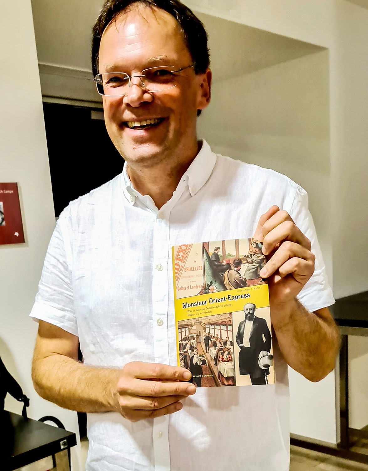 Zum Abschluss der Frankfurter Buchmesse besuche ich am Abend eine Veranstaltung von Kultur & Bahn im Haus des Buches. Der Autor und Filmemacher Gerhard Rekel hat sich intensiv mit dem legendären Orient-Express beschäftigt. Bis heute beflügelt der „König der Züge“ die Sehnsucht nach Abenteuern und romantischen Erlebnissen. Was ist die Geschichte, wer hat ihn auf die Gleise gestellt und welche Vision steckte dahinter? Rekels Buch „Monsieur Orientexpress“ ( Verlag Kremayr & Scheriau) beleuchtet das spannende Leben von Georges Nackelmackers, der den Orient-Express und über 180 weitere Nachtzugverbindungen durch ganz Europa auf die Gleise stellte und übrigens auch den Speisewagen erfand.