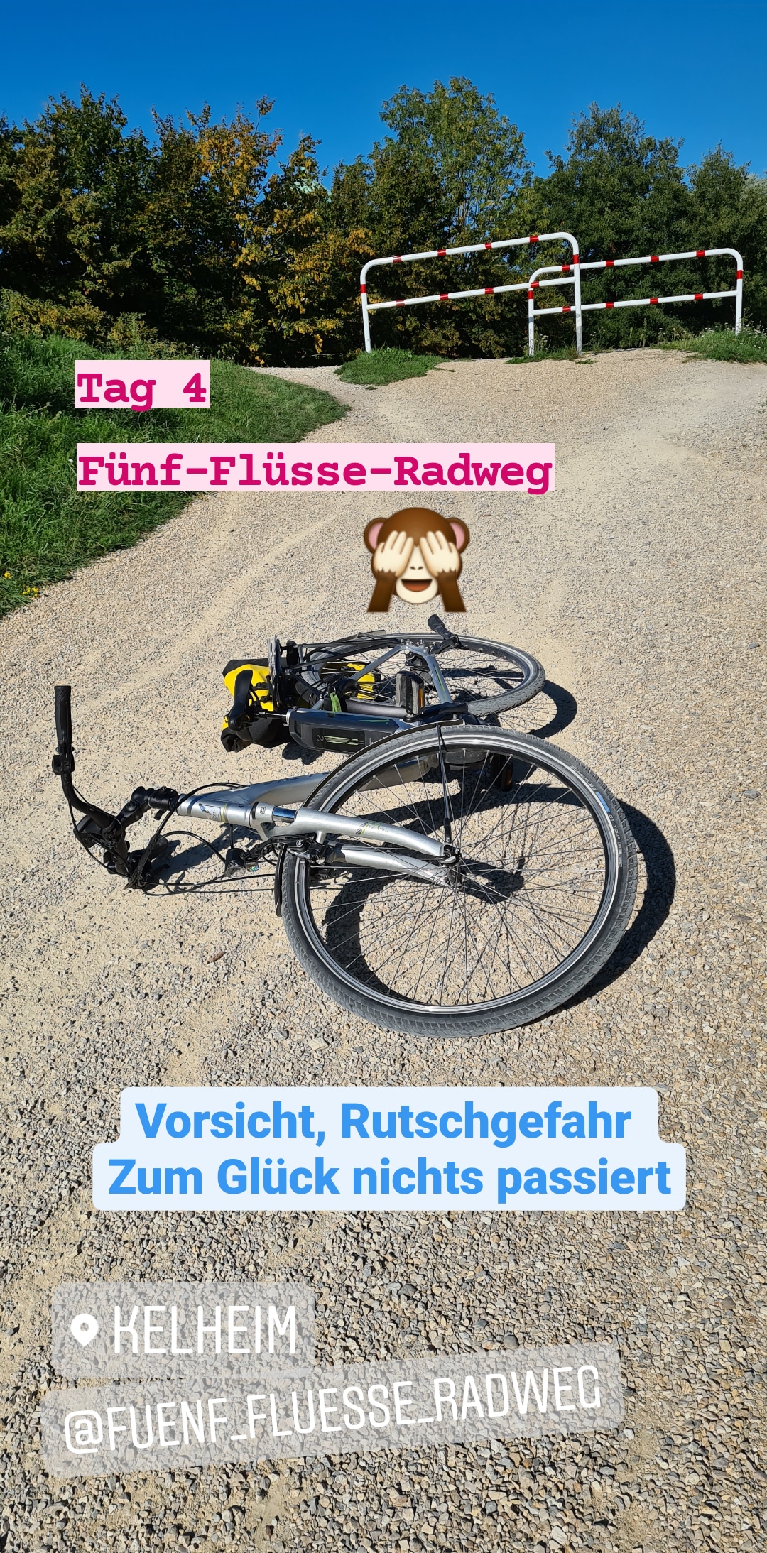 So und jetzt radeln wir die erste Etappe des Fünf-Flüsse-Radwegs. Tschüss bis morgen.