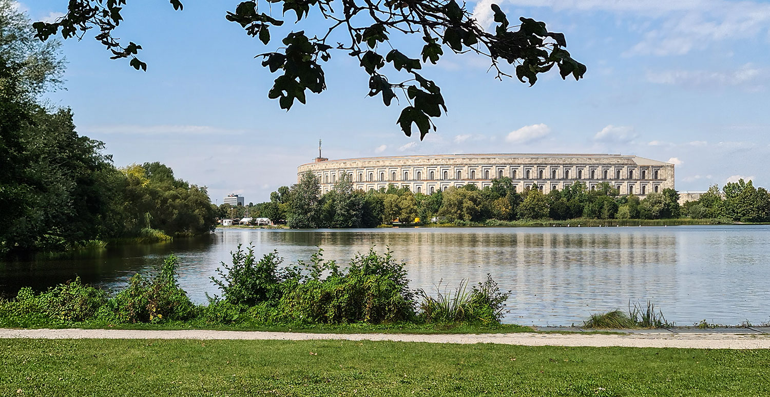 Vom Wöhrder See radelten wir bis zum Dutzendteich, wo wir uns das Dokumentationszentrum angeschaut haben. Das ehemalige Reichsparteitagsgelände ist riesig und man kann sich heute noch sehr gut vorstellen, wie damals die Massen hier aufmarschiert sind. Fotografierst du es über den See, wirkt es plötzlich ganz idyllisch … wie ein französisches Schloss an der Loire.