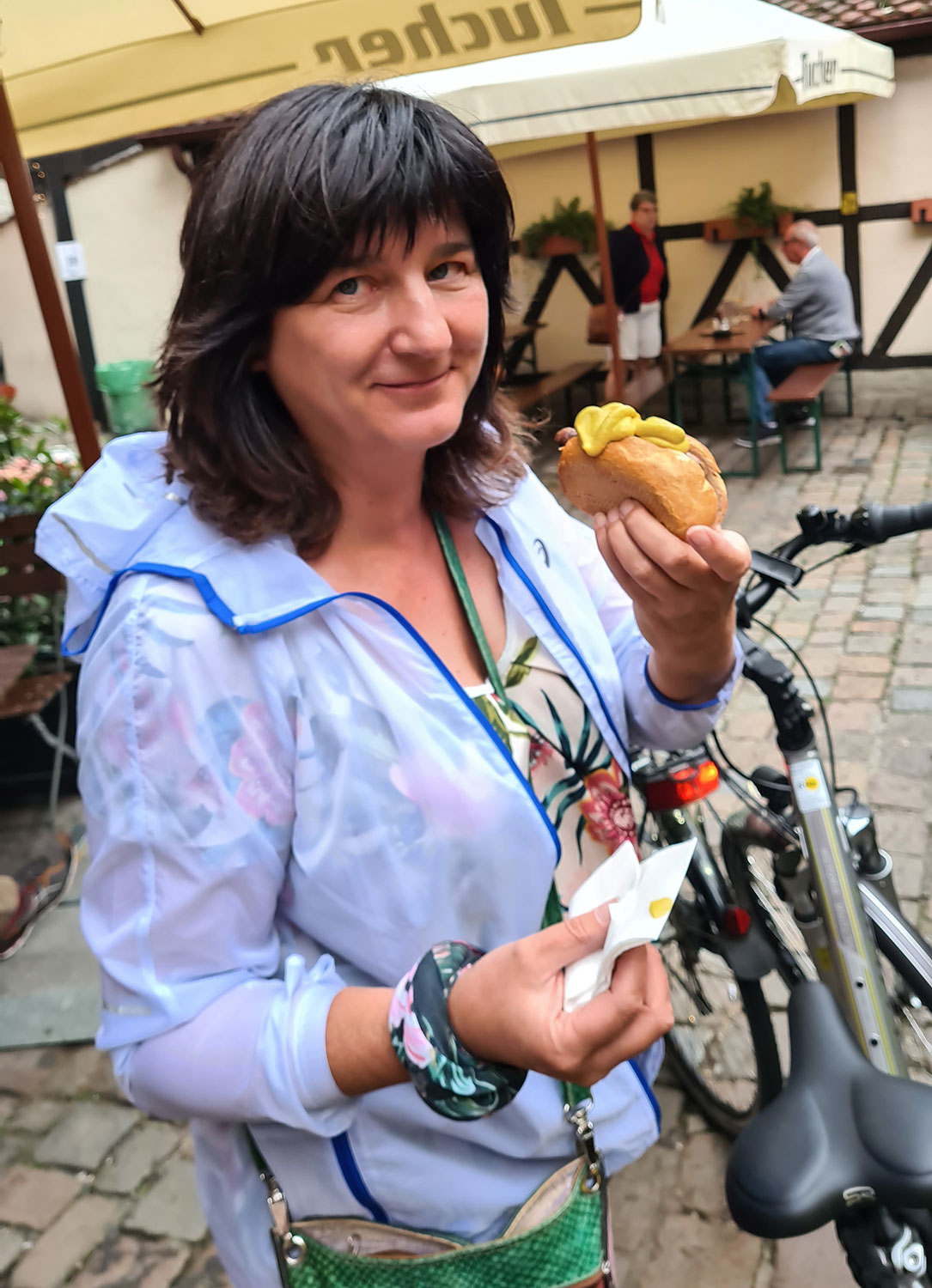 Unsere Genussmomente: die schöne Strecke an der Pegnitz, drei (Nürnberger Würste) im Weggla, die unterhaltsame Stadtführung, das Treffen mit Angelika.