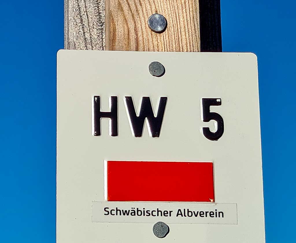 Der Hauptwanderweg HW 5 beginnt in Pforzheim, streift den Nordschwarzwald und führt südlich von Stuttgart durch den Schönbuch auf die Schwäbische Alb. Auf seinem Weg passiert er das Märchenschloss Lichtenstein und das Landesgestüt Marbach. Er folgt dem Flüsschen Lauter bis zur Mündung in die Donau und klettert hinauf zu den Burgruinen des Lautertals. Anschließend erklimmt man den Bussen, den heiligen Berg Oberschwabens, und wandert hinab nach Biberach. Der Weg führt weiter durch das Wurzacher Ried bis in die Adelegg, welche bereits im Allgäu liegt. Der HW 5 endet schließlich am Schwarzen Grat bei Isny. Insgesamt umfasst die Strecke etwa 307 Kilometer.