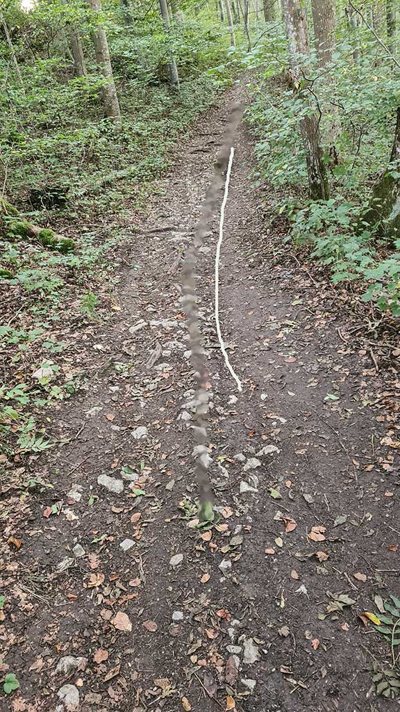 Die Wegemarken werden „auf Sicht“ alle 250 – 300 Meter angebracht aus beiden Wanderrichtungen angebracht.