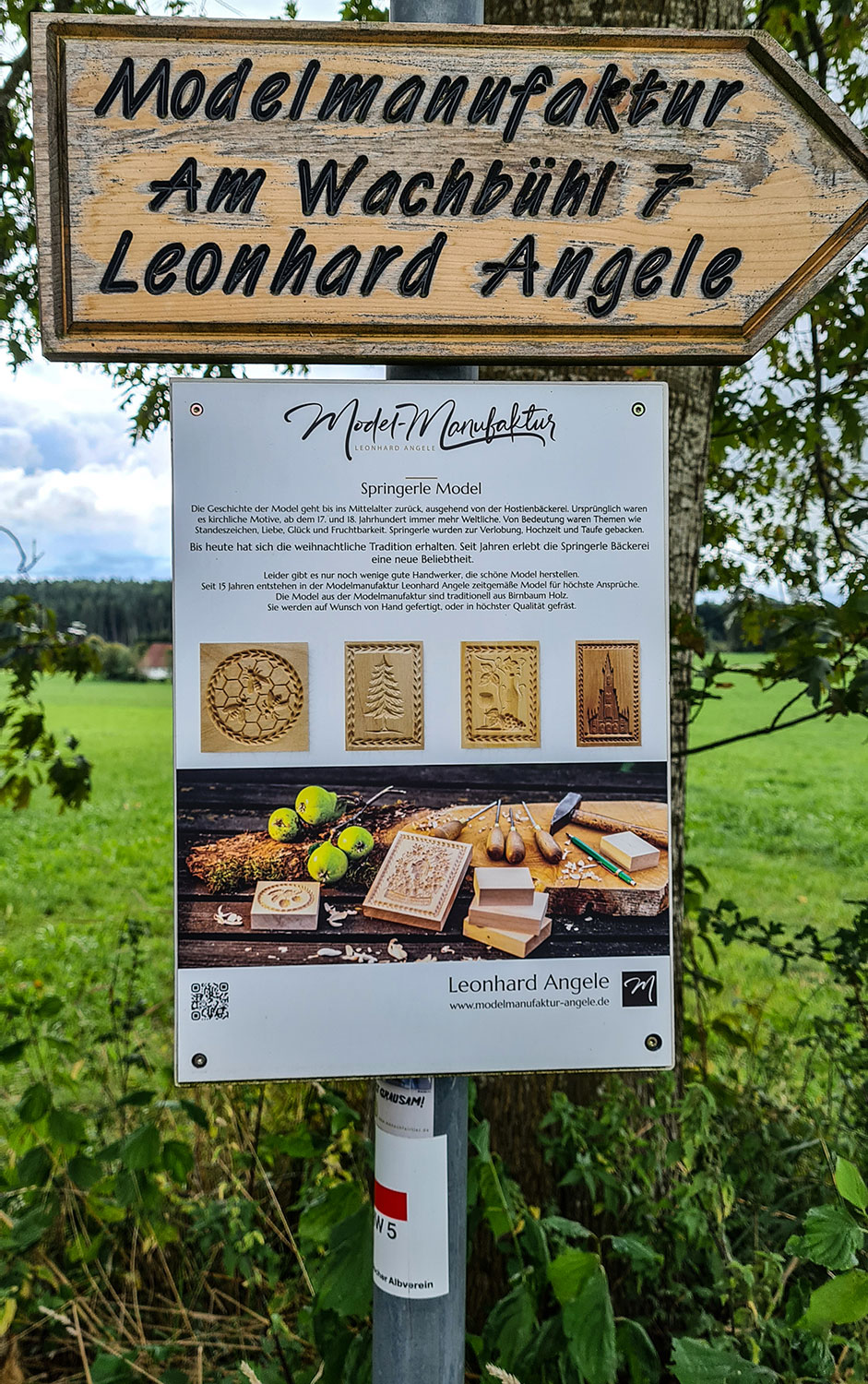 Ein Hinweisschild auf eine Springerlemanufaktur weckt meine Neugier auf einen möglichen späteren Besuch. Nach einer kurzen Rast in der Kapelle und einem netten Gespräch mit einem Radfahrer geht es weiter den geteerten Weg hinab und dann links hoch in den Wald. Aber von Ralph keine Spur.