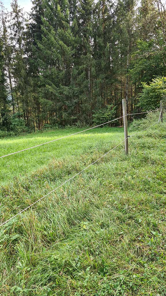 Unter einem schönen Baum entdecken wir am Hang ein eingezäuntes Beet.