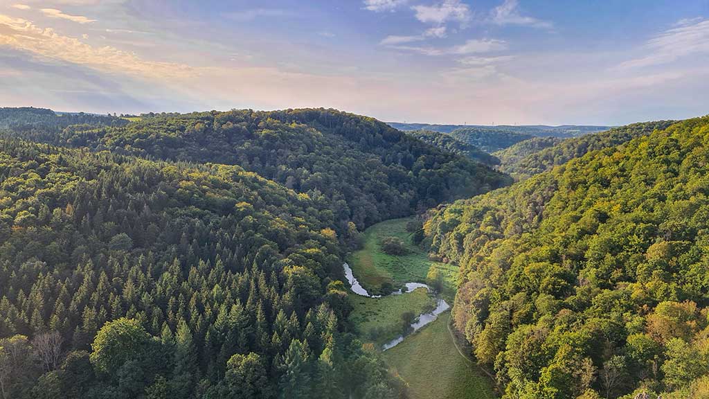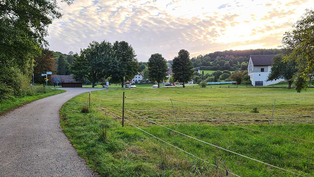 An der Ruine Monsberg vorbei und gefühlt ewig auf halber Höhe durch den Wald. Später noch mal kurz im Tal entlang bis Unterwilzingen. Das Etappenziel erreichen wir gegen 18 Uhr.