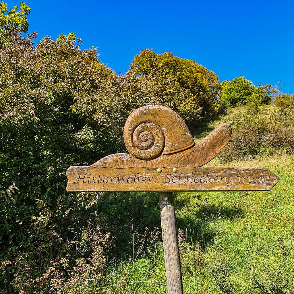 Bis Weiler ist es nicht mehr weit, doch vorher folgen wir noch dem hölzernen Wegweiser mit der Aufschrift „Historischer Schneckengarten“. Ich liebe historische Gärten, aber das hat doch weniger mit Gartenkunst zu tun, oder?