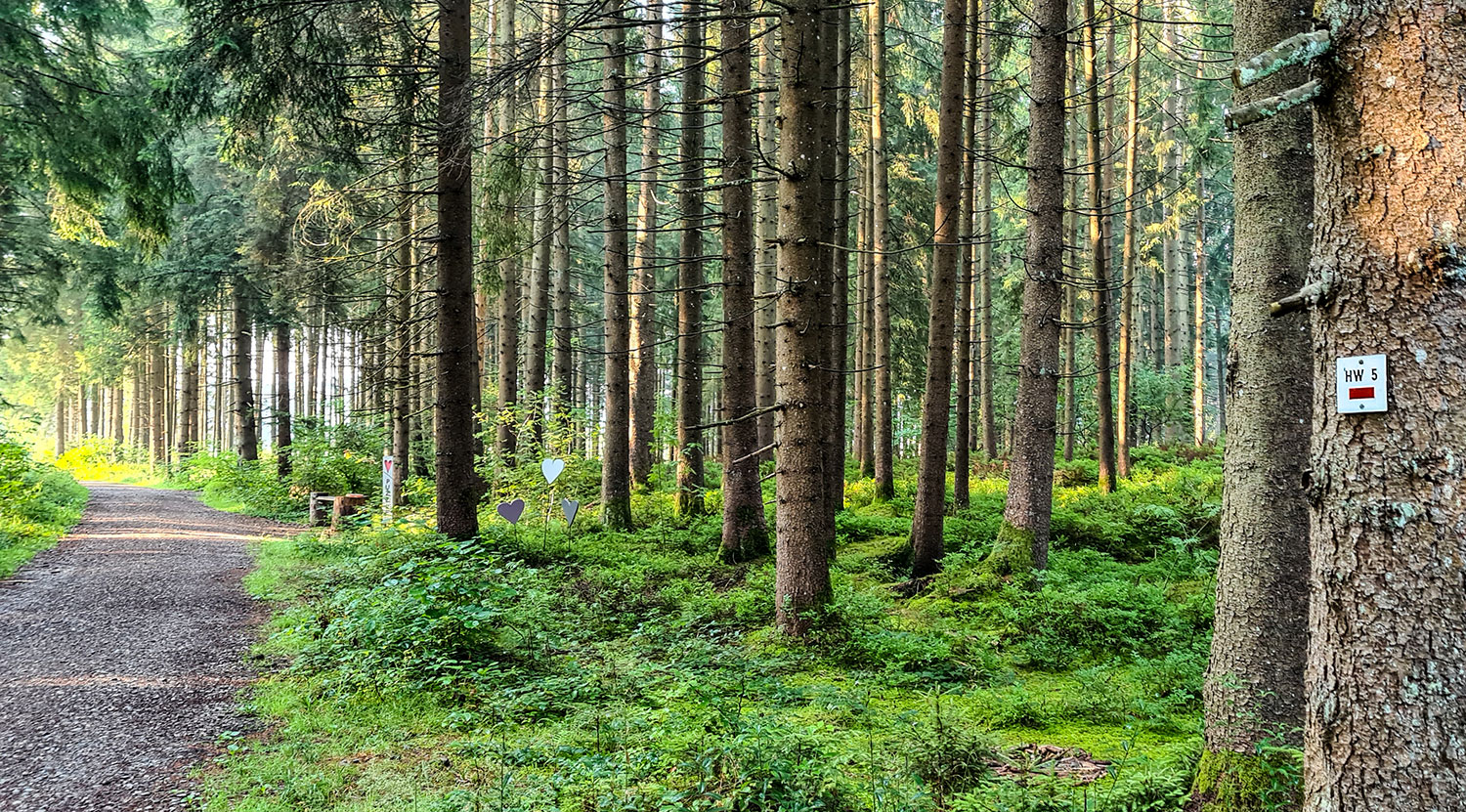Familie Wagner vom Campingplatz hat einen netten Herzrundweg angelegt. Im Wald trifft dieser dann wieder auf den Hauptwanderweg 5.