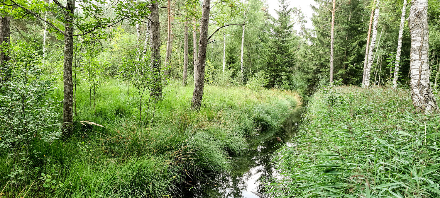 Ich stakse ein paar Runden, danach Beine abspülen und Schuhe wieder anziehen. Beim Weiterlaufen spüre ich, wie die Füße wohlig warm werden. Das sind die guten Eigenschaften des Moors, es wärmt und wirkt entzündungshemmend. Deshalb gibt es in Bad Wurzach auch Gesundheitsressorts, die spezielle Mooranwendungen anbieten.