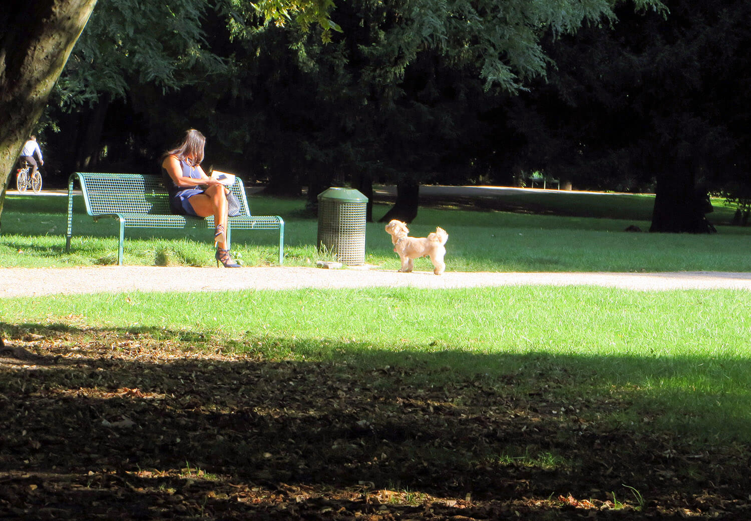 Der Stadtgarten hat einen schönen alten Baumbestand mit Ginkgos, Rosskastanien, Blutbuchen und Eichen. Ich lasse mich auf die Morgenstimmung ein und genieße die frische Luft und Ruhe inmitten der Stadt, nur ein paar Schritte von der Venloer Straße entfernt. Eine halbe Stunde später kehre ich wieder zur Haltestelle zurück, denn ich möchte ja noch mehr sehen.