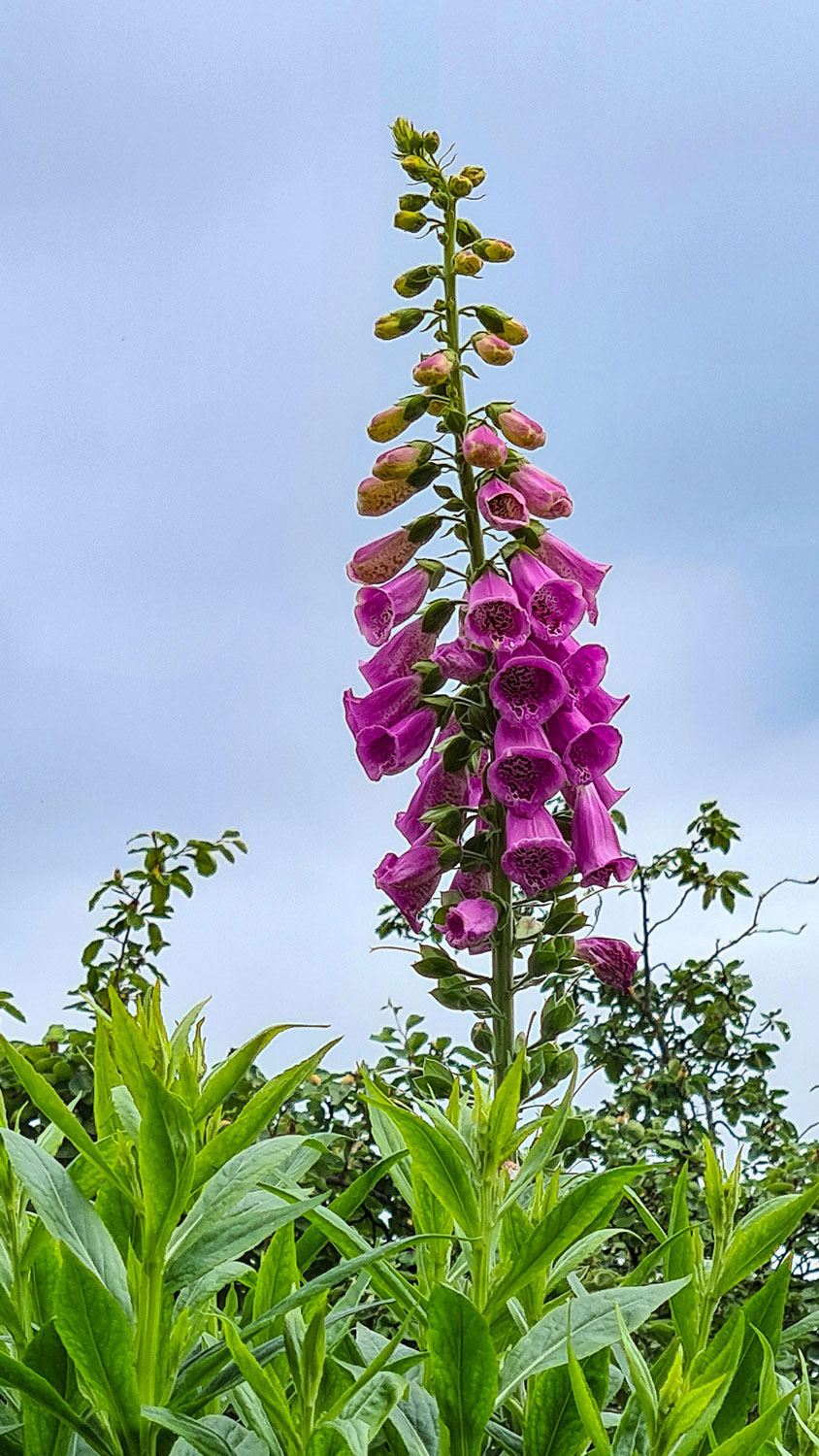 Doch Rittersporn und Fingerhut strahlen schon in leuchtendem Blau und Violett und überragen die übrigen Blüten. Die letzten Pfingstrosen und der rote Mohn blühen noch, später im Sommer gesellen sich die heiteren Gelbtöne der Sonnenblumen und die in allen Farben leuchtenden Dahlien dazu. Nolde malte wohl oft direkt mit der Staffelei zwischen den Blumen stehend. Im Garten gibt es auch ein kleines gelb gestrichenes, mit Reet gedecktes Gartenhäuschen. Dort hielt sich das Ehepaar regelmäßig auf, trank Tee und genoss die Zweisamkeit. Nett finde ich die Idee, dass der Weg durch den Garten den verschlungenen Initialen des Paares – E und A – folgt.