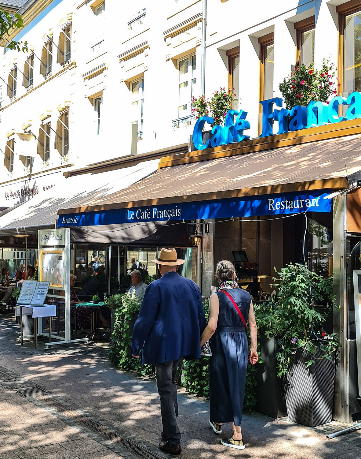 Der Paradeplatz ist für die Luxemburger auch der „Salon der Stadt“. Alt und jung trifft sich zum Essen, Kaffee trinken und quatschen. Lindenbäume spenden Schatten und zahlreiche Cafés und Restaurants mit großen Terrassen säumen das Karré. Nicht zu übersehen ist der imposante Palast Cercle Cité. Das Ensemble strahlt französisches Flair aus. Ein bisschen gediegen, ein bisschen versnobt, so wie die ganze Oberstadt. Weil ich gerade erst angekommen bin, möchte ich mich nicht gleich hinsetzen, flaniere durch die Gassen bis zum Place de la Constitution.