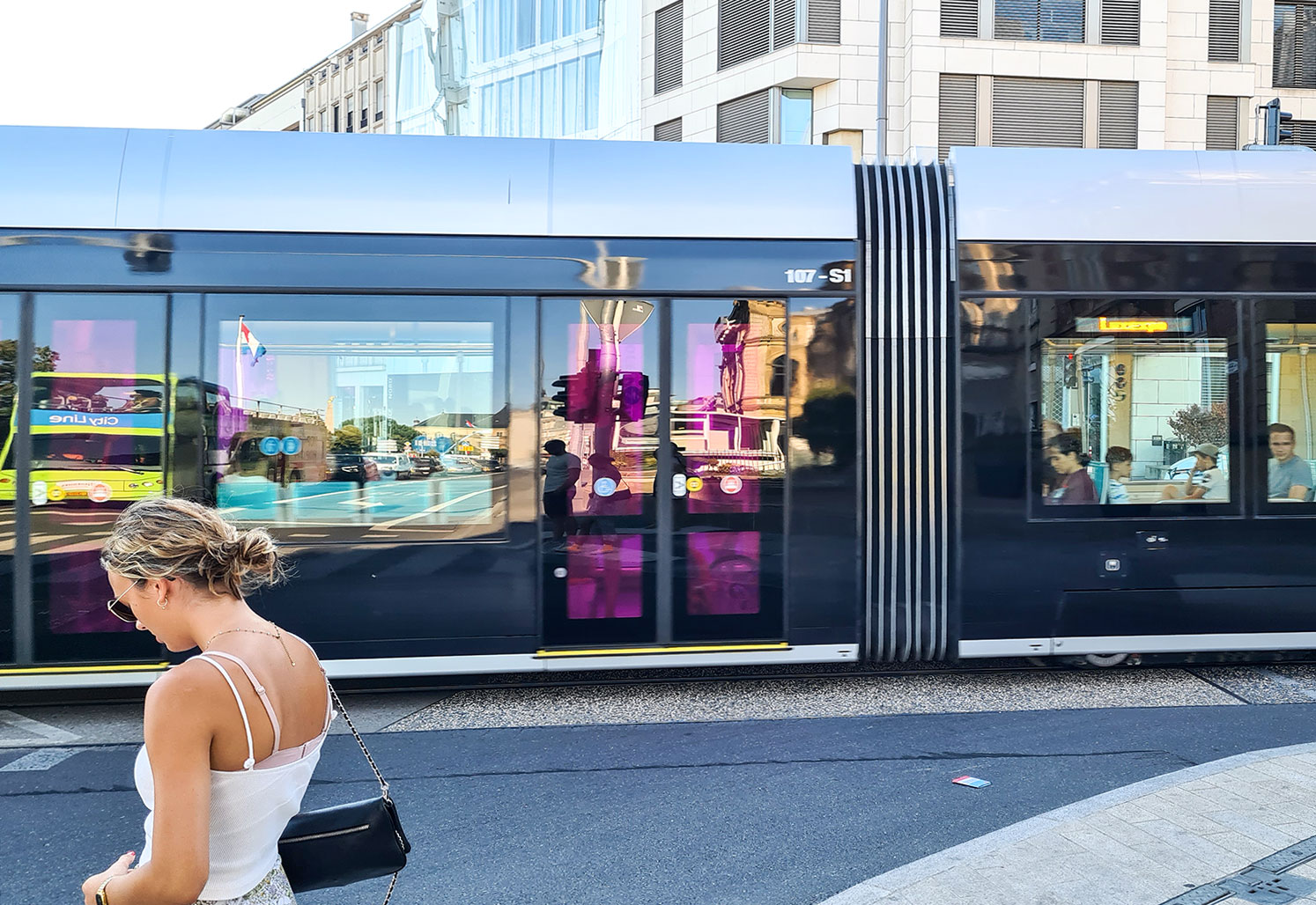- Luxemburg hat eine Straßenbahnlinie, damit solltest du unbedingt auch fahren. Sie ist hochmodern, sehr bunt, aber nicht sonderlich schnell. Du kannst gleich am Bahnhof einsteigen.